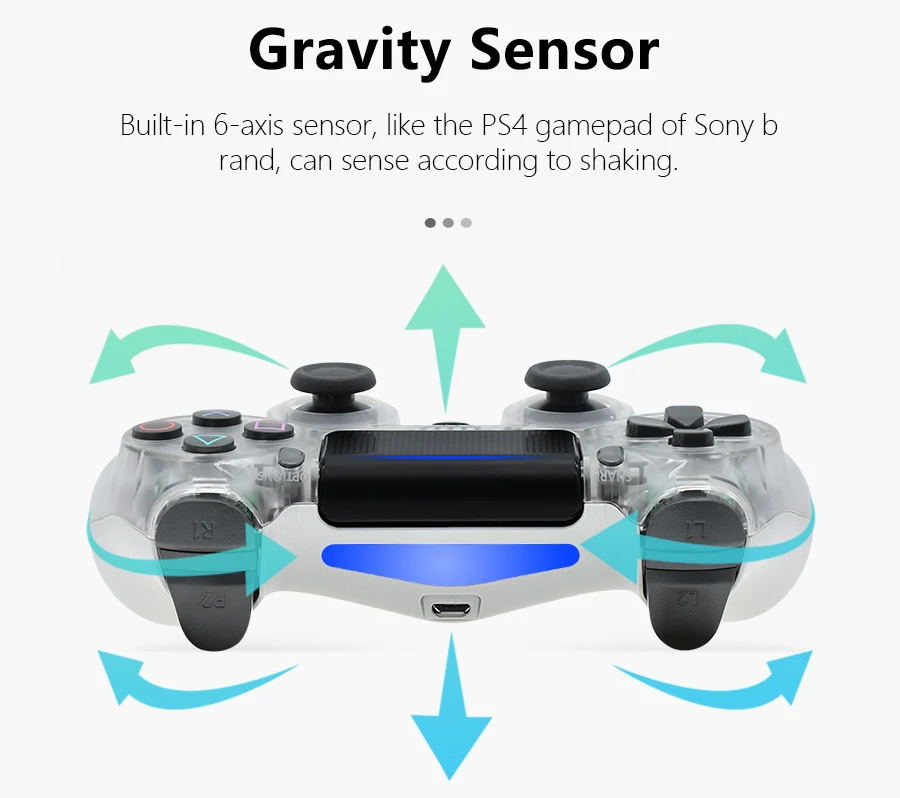 내장 된 6 축 센서는 Sony 브랜드의 PS4 컨트롤러와 일치하는 컨트롤러의 흔들림에 따라 감지 할 수 있습니다.