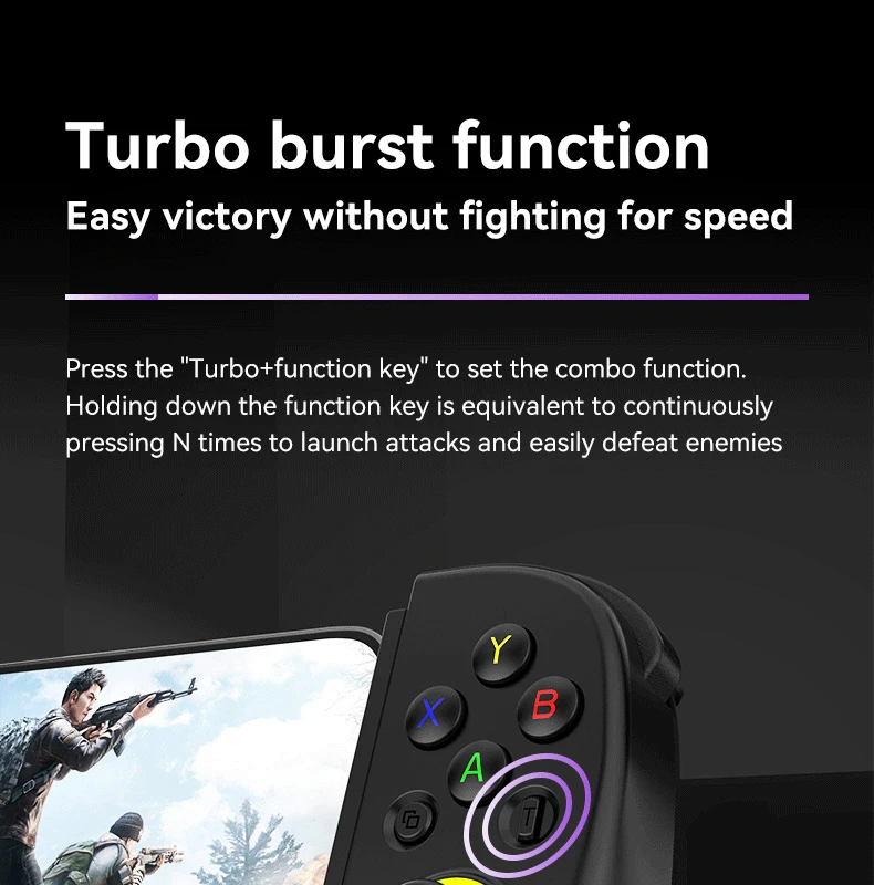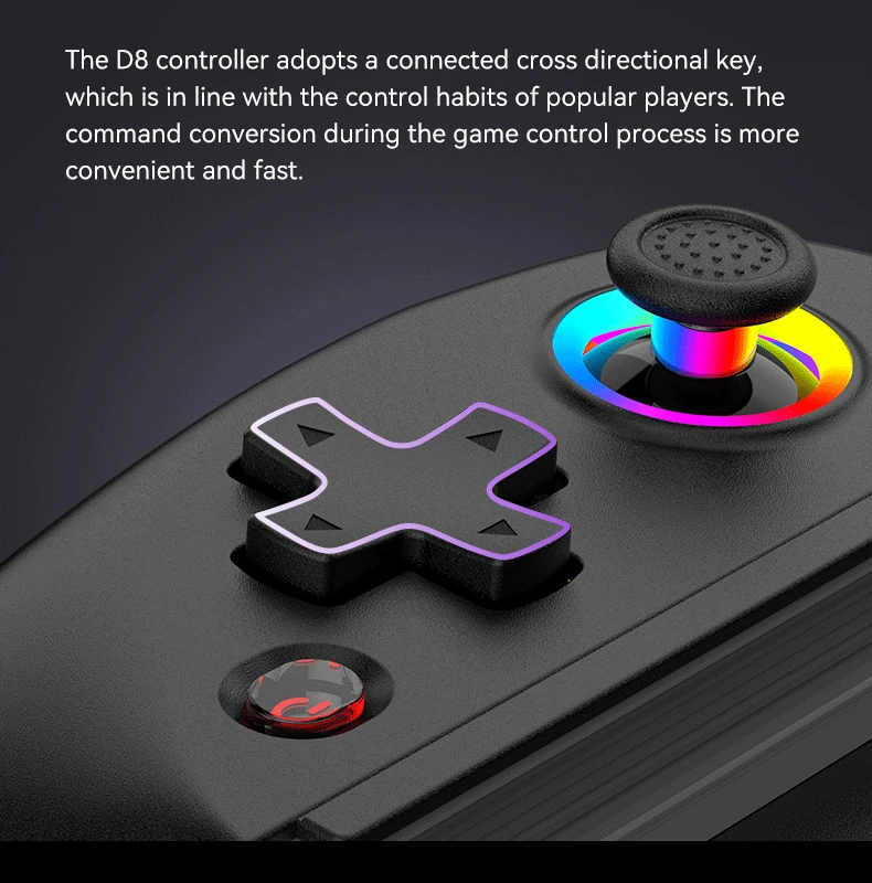 안드로이드 iOS PS4 스위치 PC용 터보/6 축 자이로/진동이 있는 AIBOWEY D8 게임 컨트롤러 RGB 라이트 휴대 전화 게임 패드