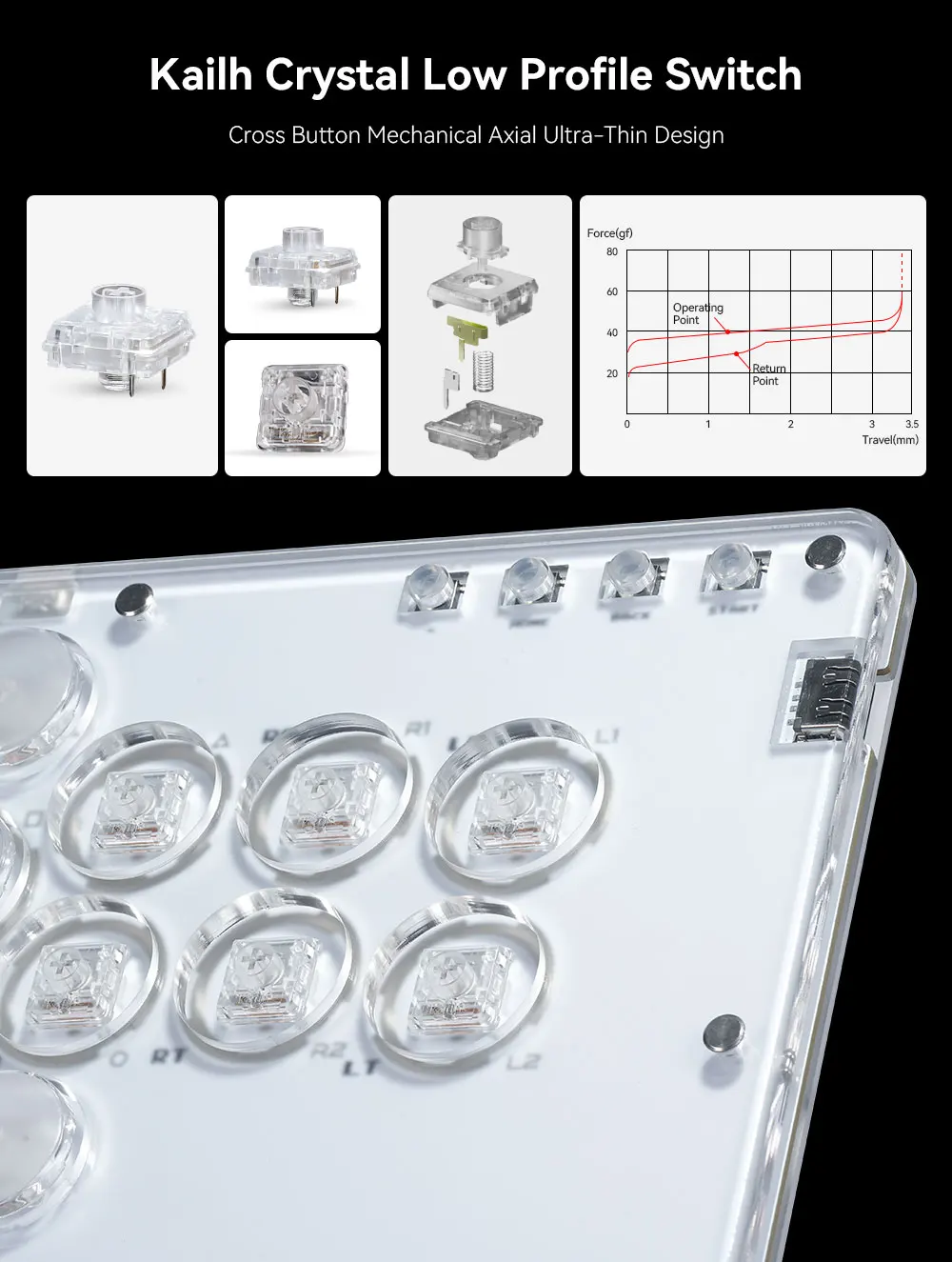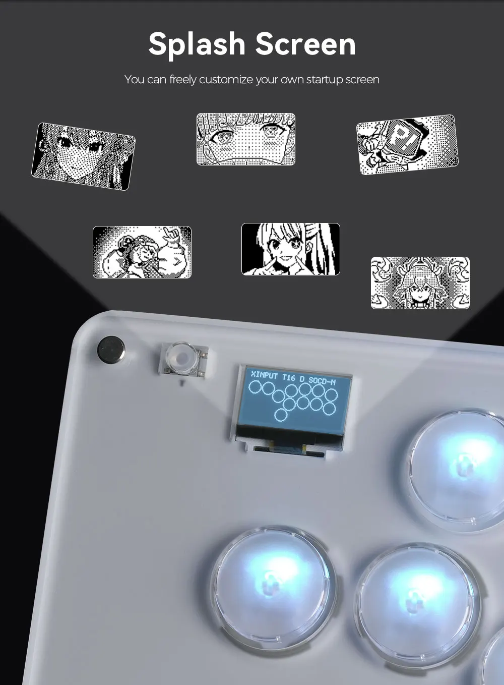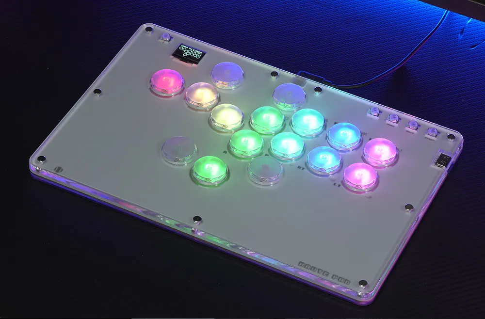 RGB 조명 효과가있는 투명한 릴 소재, 16 개의 버튼이있는 확대 된 히트 박스 스타일의 아케이드 키보드로 편안한 느낌을 제공하고 격투 게임을 즐길 수 있습니다. 구매자는 자신 만의 히트박스 스킨을 만들어 컨트롤러를 더 시원하고 개인화되도록 만들 수 있습니다
