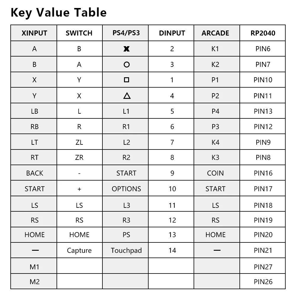 동시에 반대 방향 (SOCD) 을 청소하면 컴퓨터/콘솔로 입력을 전송할 때 컨트롤러가 특정 방향 입력 규칙을 준수할 수 있습니다. 컨트롤러는 다음 버튼 기본 조합 중 하나를 눌러 3 가지 SOCD 모드 중 하나를 선택할 수 있습니다.