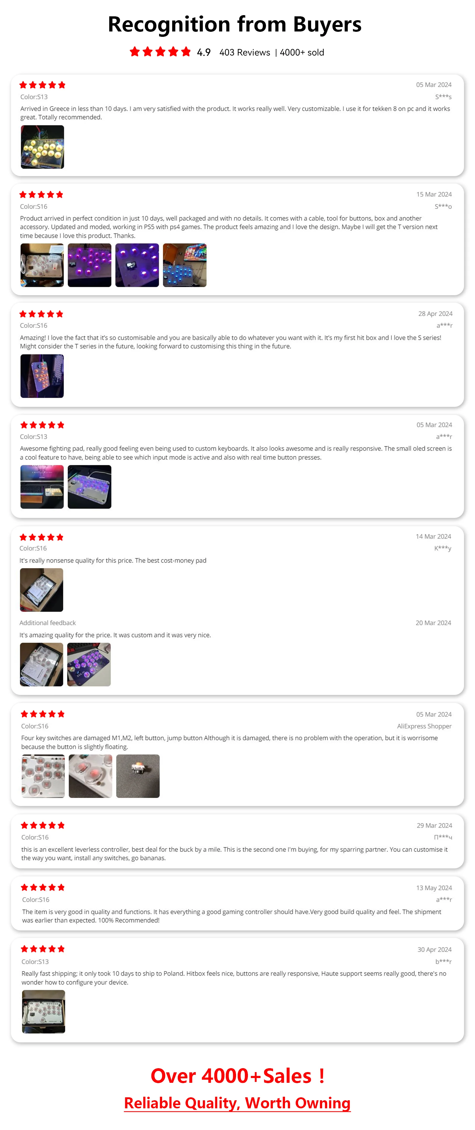RGB 조명 효과가있는 투명한 릴 소재, 16 개의 버튼이있는 미니 히트 박스 스타일의 아케이드 키보드로 편안한 느낌을 제공하고 격투 게임을 즐길 수 있습니다. 구매자는 자신 만의 히트 박스 스킨을 만들어 컨트롤러를 더 시원하고 개인화되도록 만들 수 있습니다