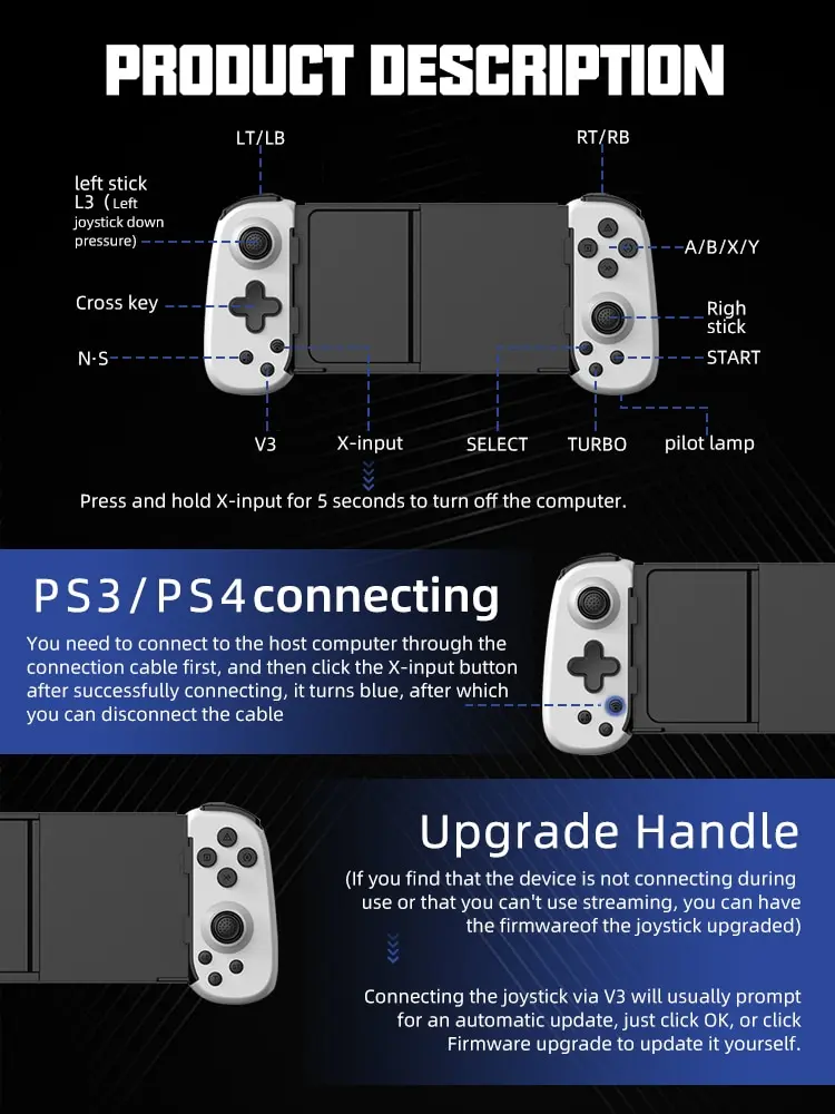 스트리밍을 지원하는 게임 컨트롤러를 통해 플레이어는 게임용 클라우드 게임 서비스를 통해 Xbox 또는 PS4/PS5 게임 콘솔에서 게임 컨트롤러로 게임 컨텐츠를 전송할 수 있습니다. 이 접근 방식은 실제 게임 콘솔이 필요없이 플레이어에게보다 편리하고 유연하며 게임 경험을 제공합니다.