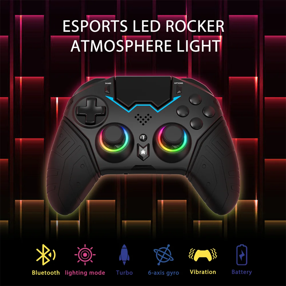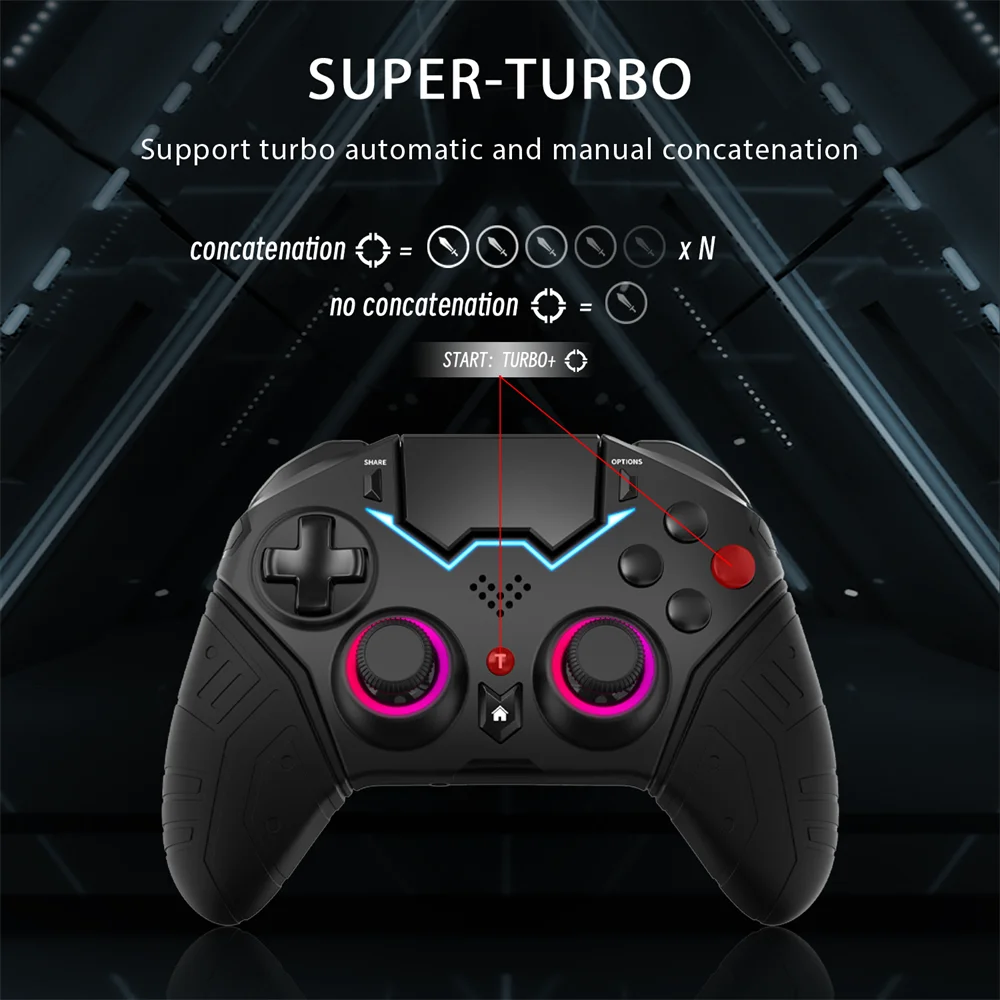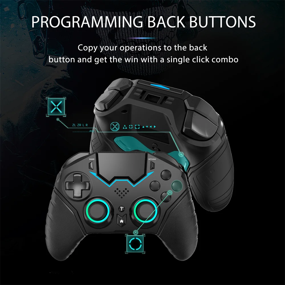 PS4 용 NE 컨트롤러 PS 4 3 PC iPhone 무선 블루투스 게임 패드 원격 제어 프로그래밍 가능 터보 6 축 자이로 RGB 조이스틱
