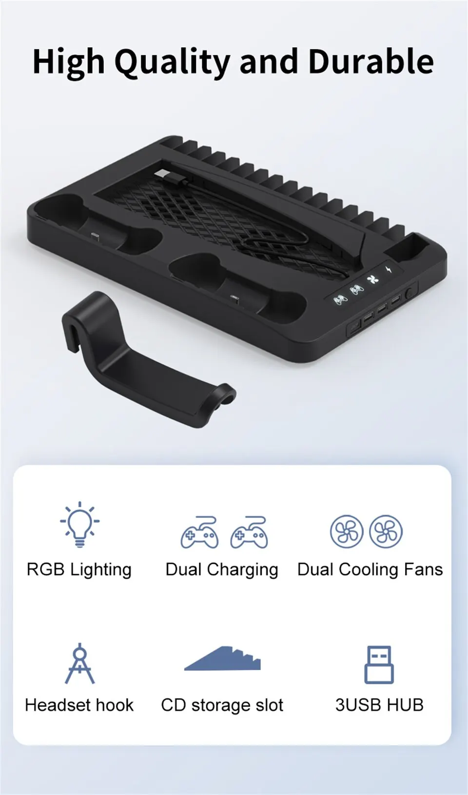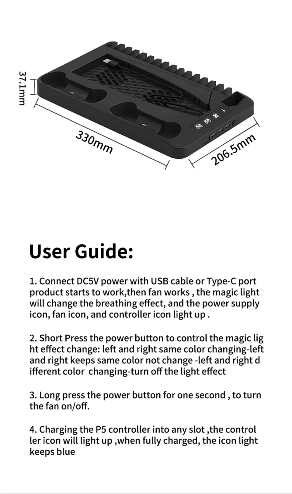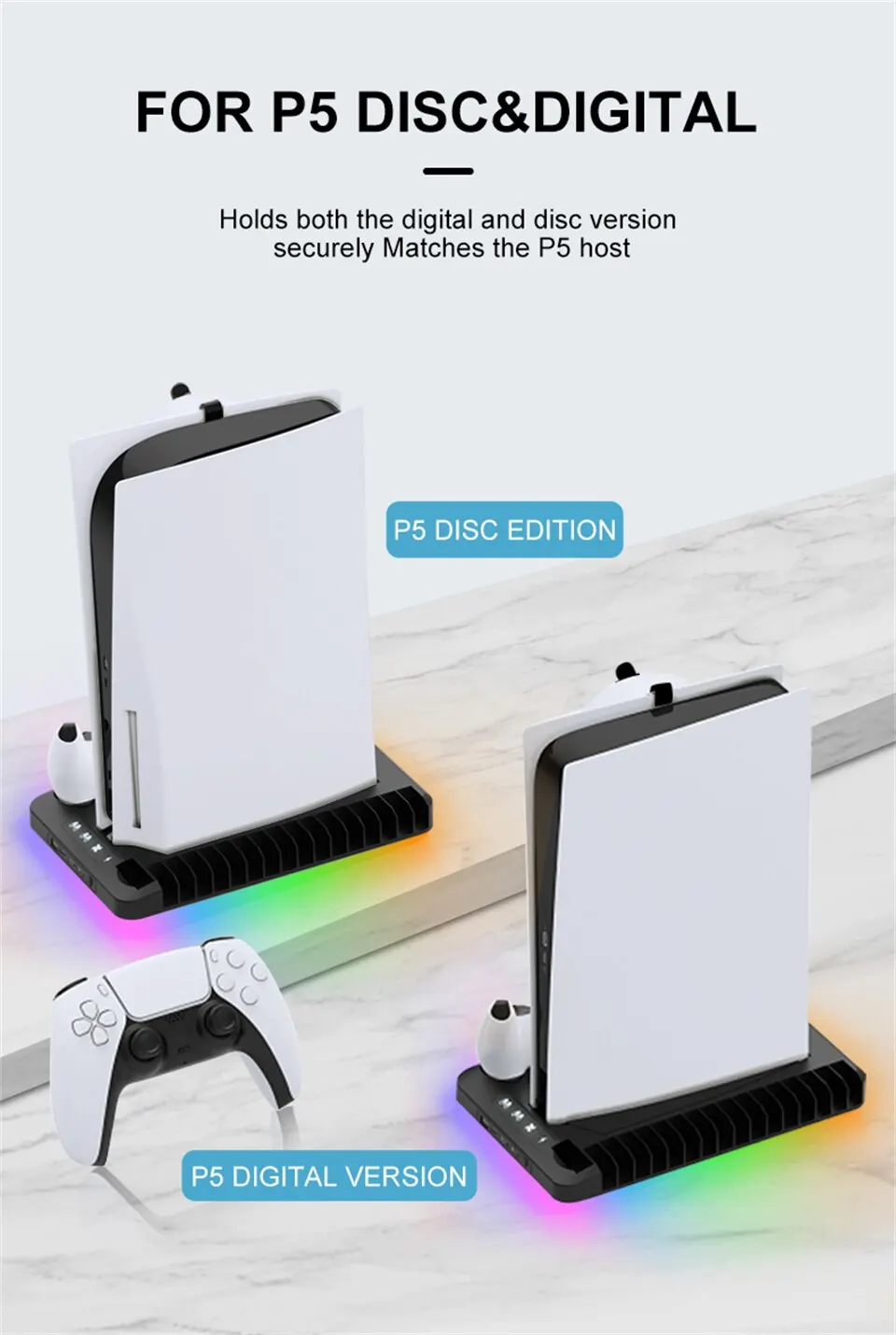 • PS5 액세서리:포괄적 인 PS5 액세서리로 냉각, 충전 및 조명 기능을 모두 하나로 제공하여 게임 경험을 향상시킵니다.