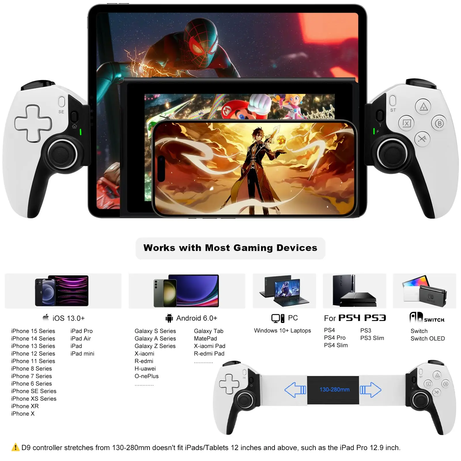 D9 는 130 ~ 280mm 장치와 호환되며 휴대 전화, 태블릿 및 스위치에 문제가 없습니다. 클램핑 위치의 실리콘 래핑 디자인은 마모로부터 장치를 보호 할 수 있습니다.