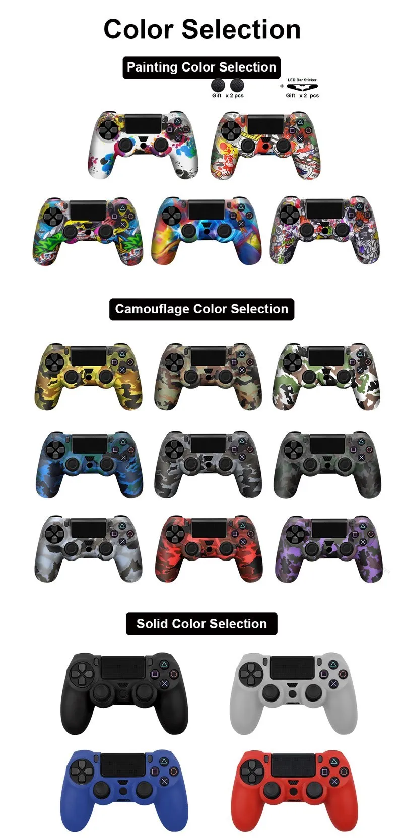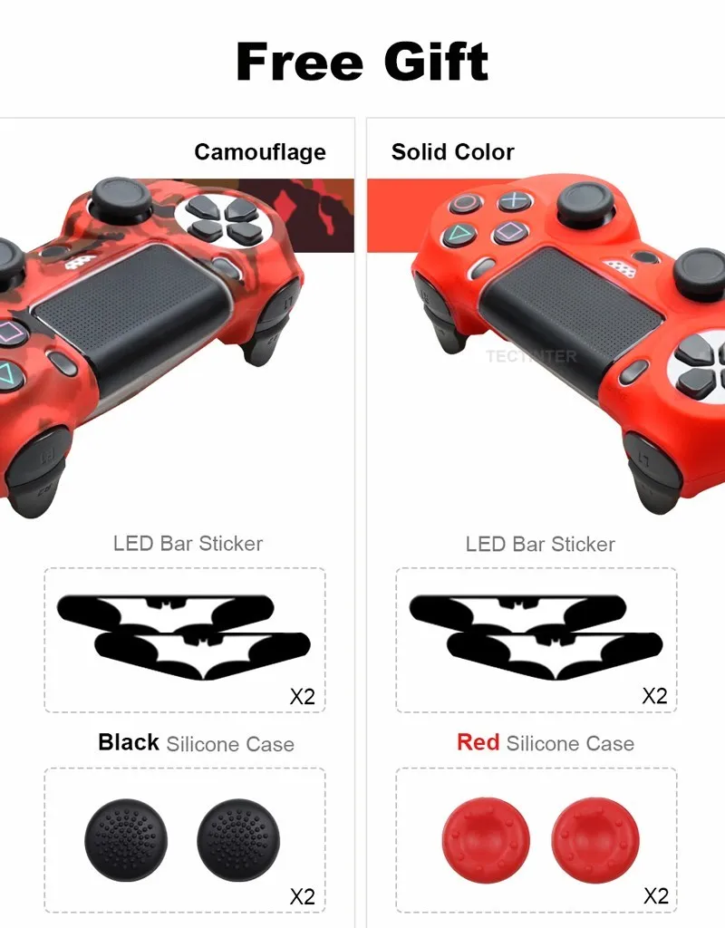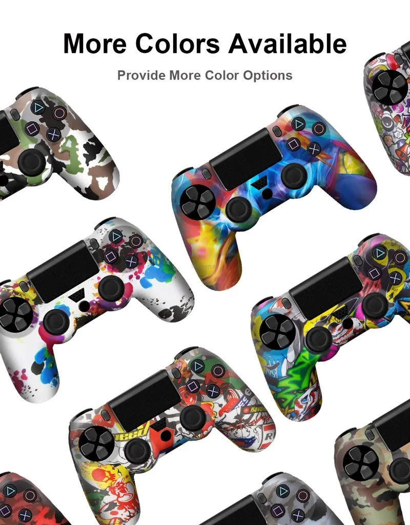 충격, 긁힘으로 인한 PS4 컨트롤러 손상을 방지합니다. 실리콘 마찰은 편안한 그립력을 제공하고 게임 플레이 중 미끄러짐을 방지하며 땀이 많은 손을 걱정하지 않습니다. 설치 및 제거가 매우 쉽고 PS4 컨트롤러에 완벽하게 맞으며 기능에 영향을 미치지 않습니다. 물 전송 인쇄 기술 PS4 컨트롤러의 위장, 더 많은 패션을 찾습니다.
