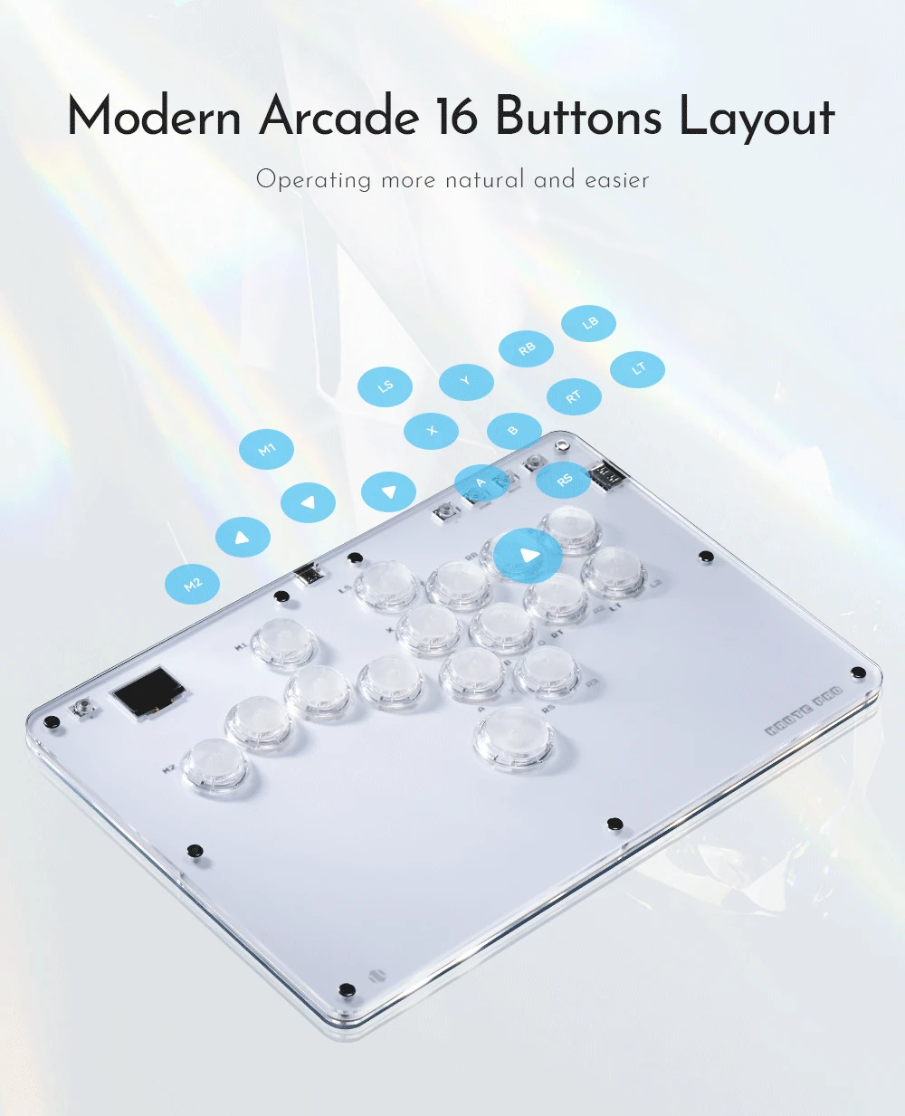 이것은 크리스탈 스위치로 만든 레버리스 컨트롤러로 완전히 흰색이고 완벽하여 저항 할 수 없습니다. RGB 조명 효과는 투명도가 향상되어 게임에 몰입 할 수 있습니다. 버튼 테두리로 아케이드 장면으로 돌아갑니다!