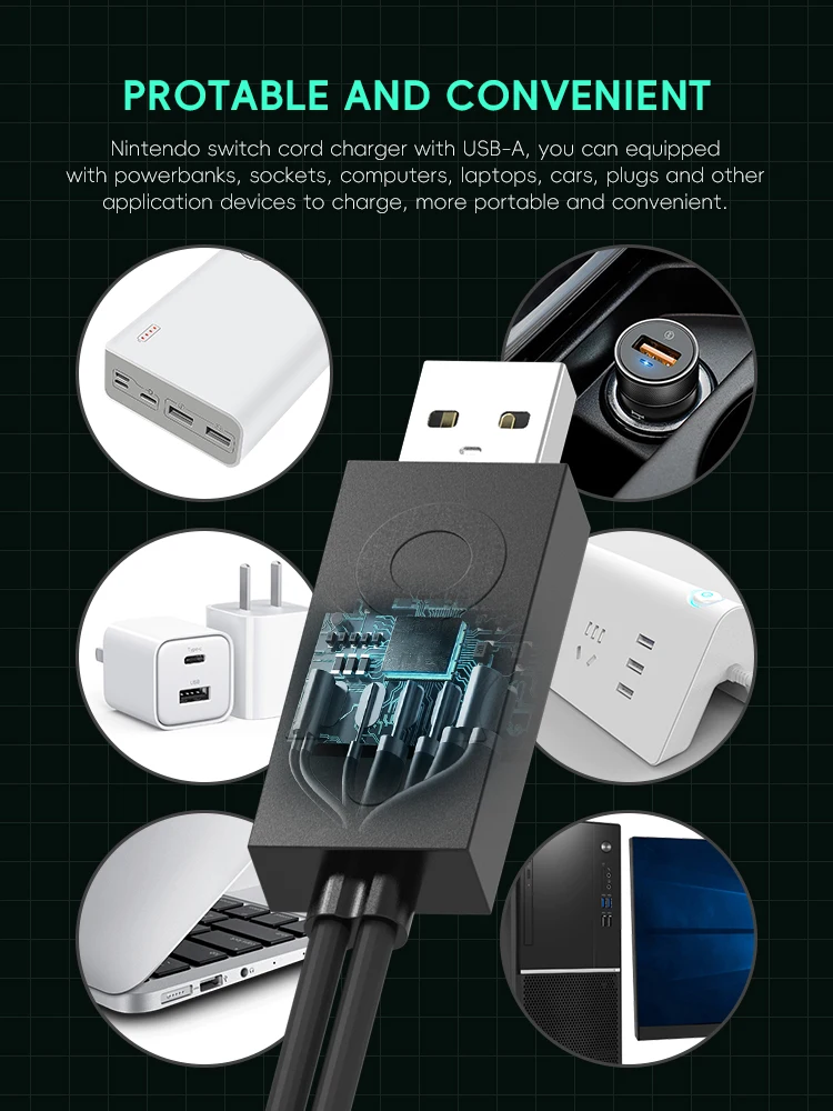 Usb-A가 포함된 Nintendo Switch 코드 충전기, Powerbank, 소켓, 컴퓨터, 노트북, 자동차, 플러그 및 기타 응용 장치를 장착하여 충전하고, 더 잘 퍼지며 편리하게 사용할 수 있습니다.