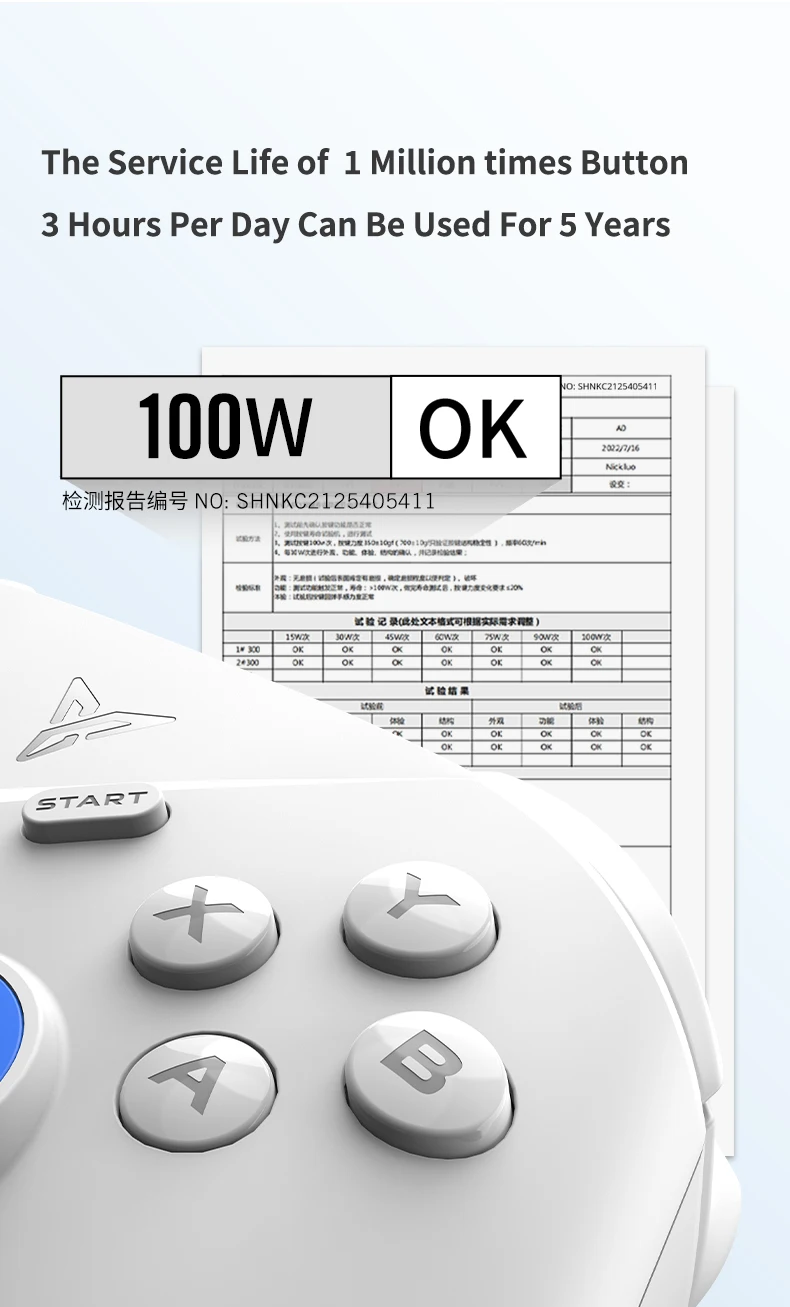 이중 진동 및 미세 조정 제어: 여러 속도 수준의 비대칭 진동 모터가 게임 몰입도를 향상시킵니다. 선형 트리거 버튼은 여러 단계로 성능을 제공할 수 있습니다. 보다 현실적인 실시간 게임 경험, 제로 데드 존을위한 금속 링과 POM 시트 조합이있는 일본 ALPS 로커와 함께.