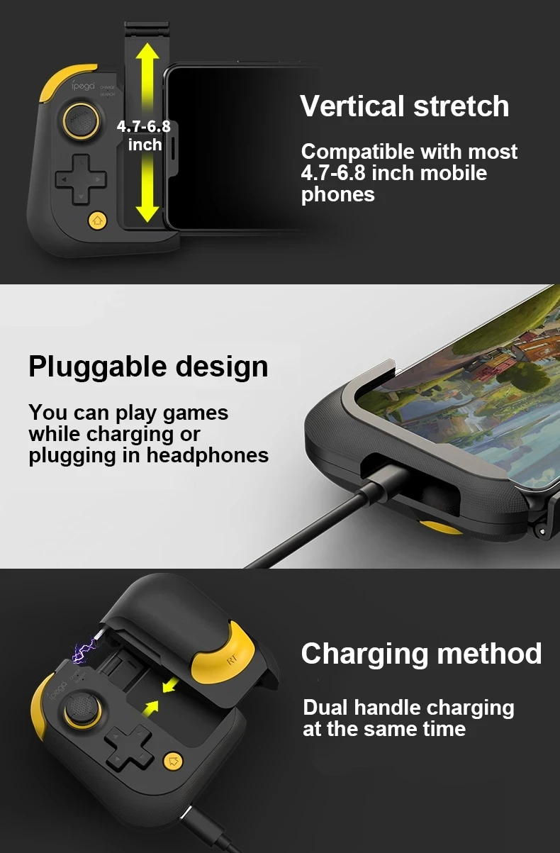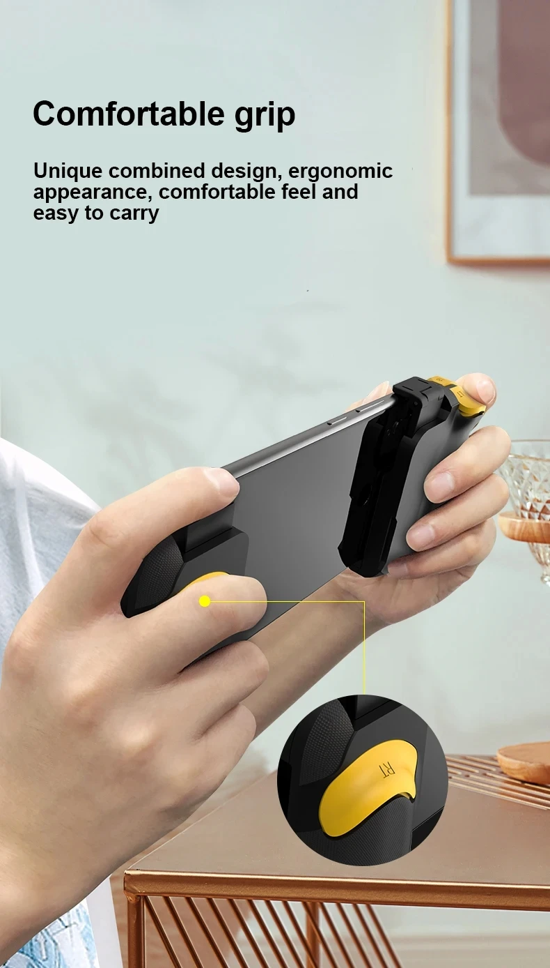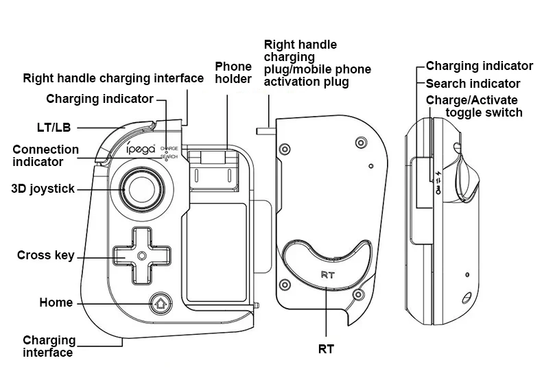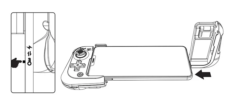 오른쪽 핸들 측면의 토글 스위치를 활성 위치로 뒤집습니다!! (아래 그림 참조) 오른쪽 손잡이의 TYPE-C 플러그를 휴대폰의 TYPE-C 포트에 삽입합니다.