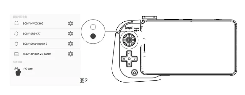 2. 휴대 전화를 휴대 전화 홀더에 넣고 클램프하고 휴대 전화의 Bluetooth 장치 목록에서 "PG-9211" 을 찾아 클릭하십시오.