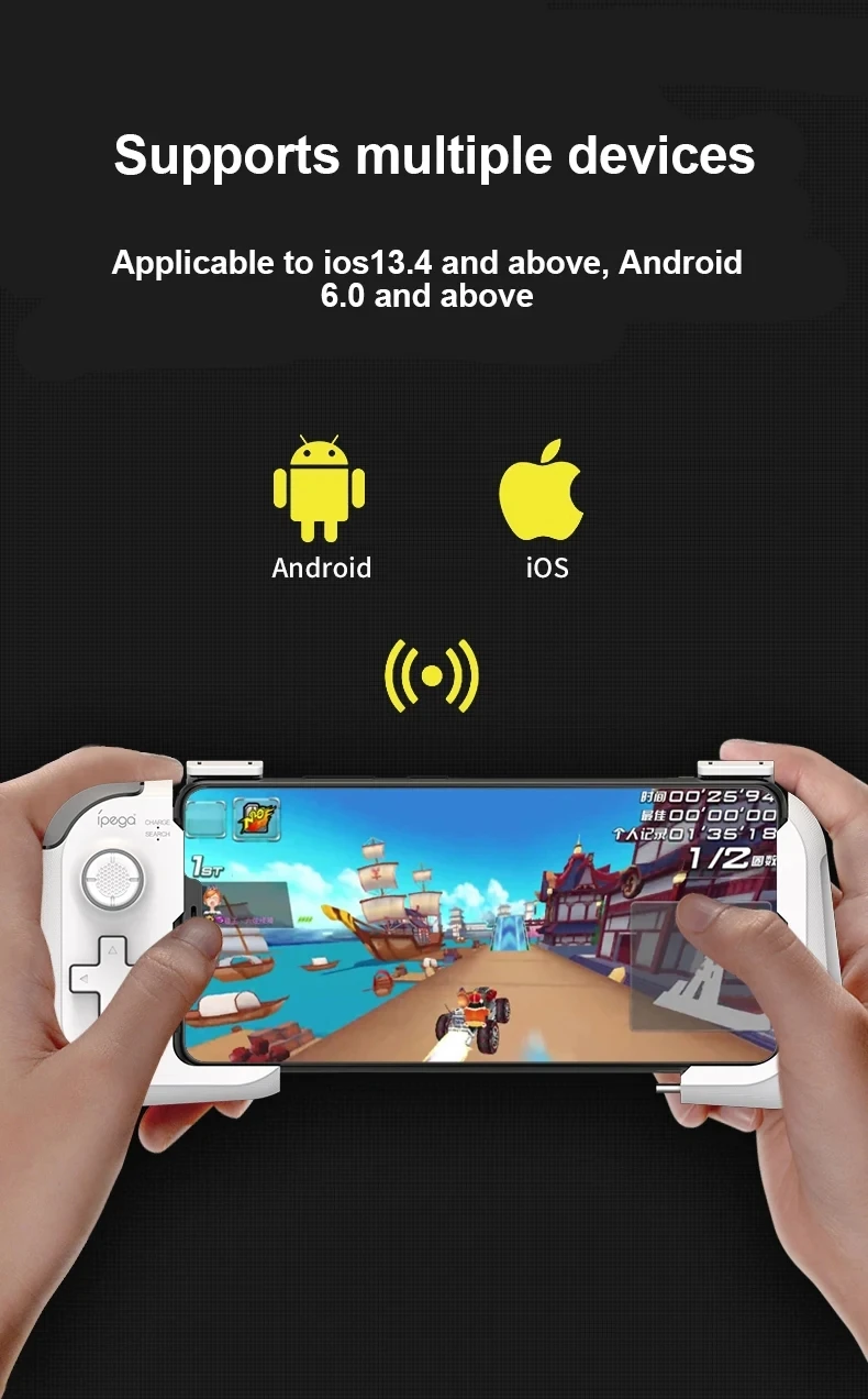 3. 오른쪽 손잡이의 휴대 전화 홀더를 위로 당기면 오른쪽 손잡이의 연결 표시등이 빠르게 깜박이고 휴대 전화를 휴대 전화 홀더에 넣고 조입니다.