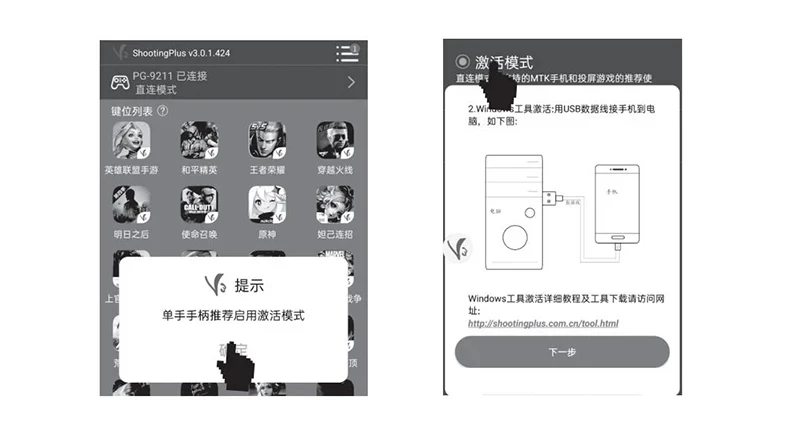 6. "ShootingPlus V3" 소프트웨어를 열고 활성화 모드를 선택하면 소프트웨어에는 인기있는 게임의 기본 키 구성이 제공되며 플레이어는 클릭 할 수 있습니다