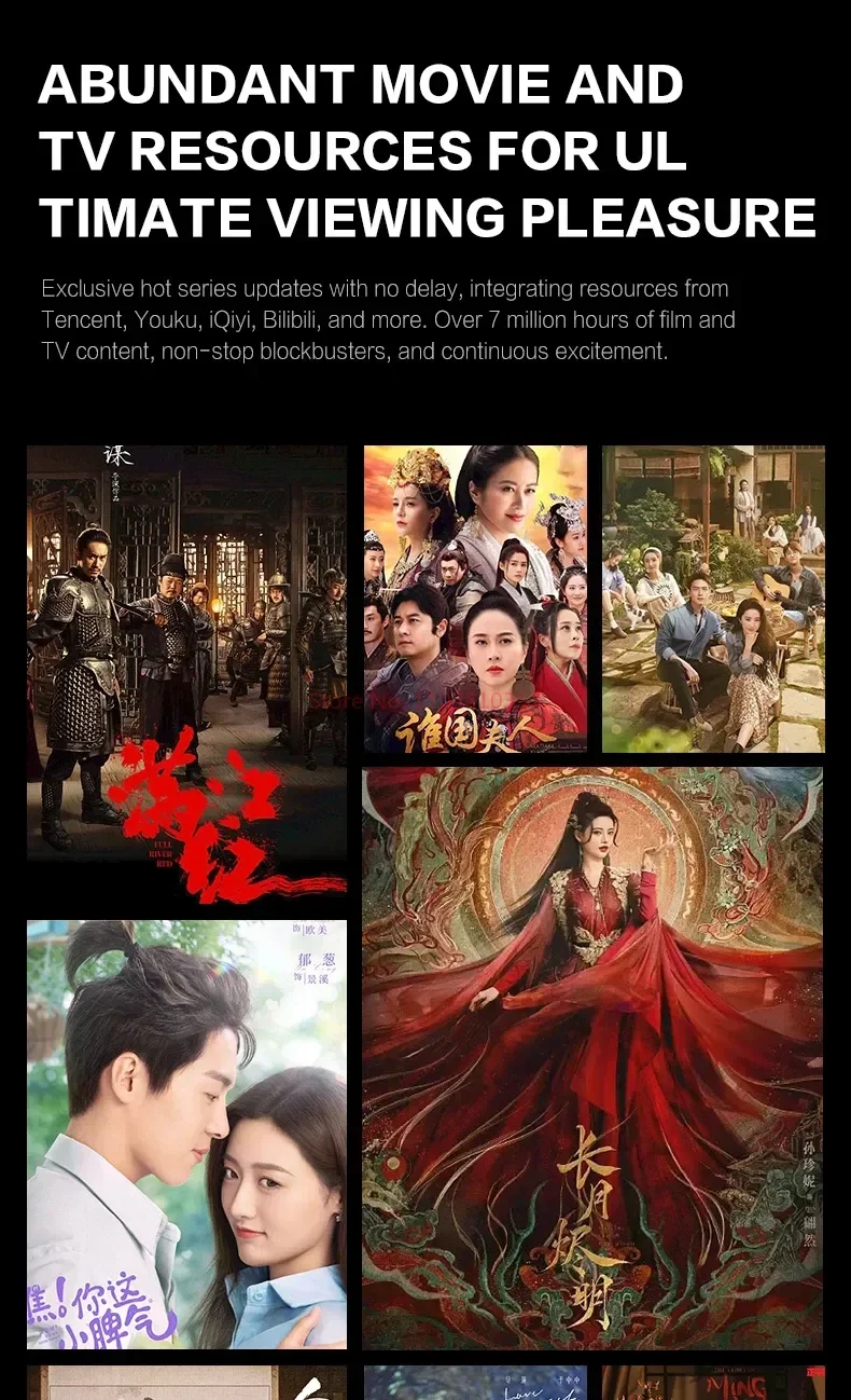 지연없이 독점 핫 시리즈 업데이트, Tencent, Youku, iQiyi, Bilibili 등의 리소스를 통합합니다. 7 백만 시간이 넘는 영화와 TV 컨텐츠, 논스톱 블록버스터, 그리고 지속적인 흥분.