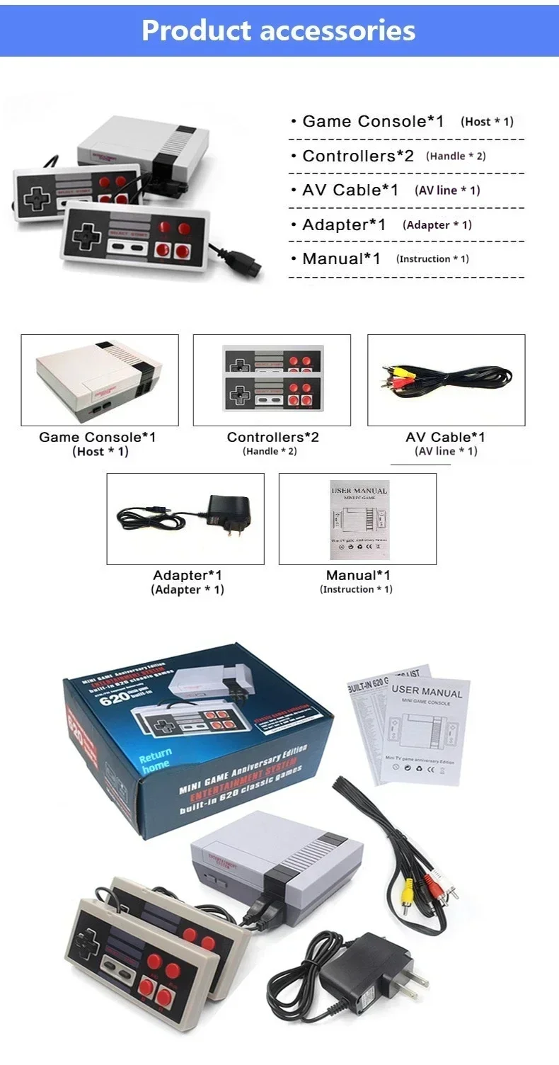 620 미니 TV 레트로 핸드헬드 비디오 게임 콘솔 620 클래식 게임 내장 듀얼 게임패드 레트로 게임 콘솔 플
