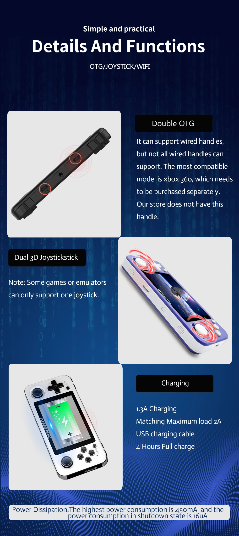 온라인 플레이/더블 OTG/더블 3D 로커/지원 3.5mm 스테레오 이어폰. |