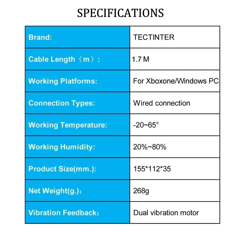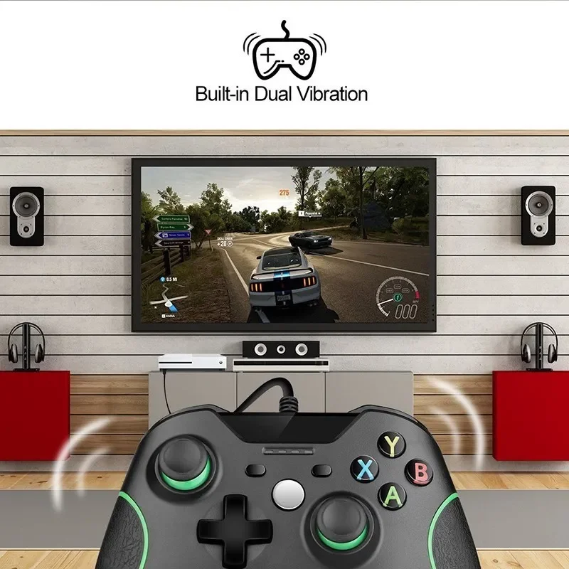 이 게임 패드는 Xbox One 콘솔을 지원할 수 있습니다. 2 개의 압력 점 트리거, 2 개의 진동 피드백 모터 및 8 방향 화살표 키를 사용하면 제어 할 수 있으며 플레이어는 전장에있는 것처럼 느껴집니다. 유선 게임 패드 중간에있는 중앙 홈 버튼을 사용하면 디지털 영화, 음악 및 게임 라이브러리에 빠르게 액세스 할 수 있습니다.