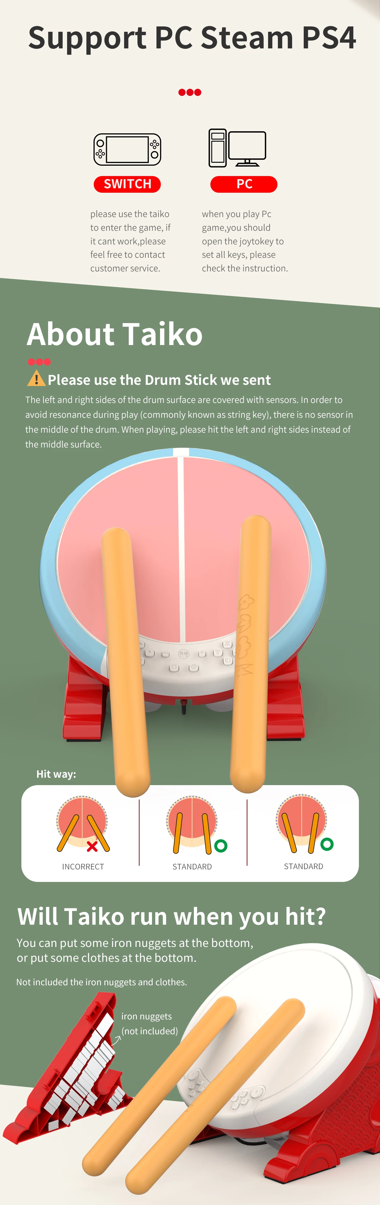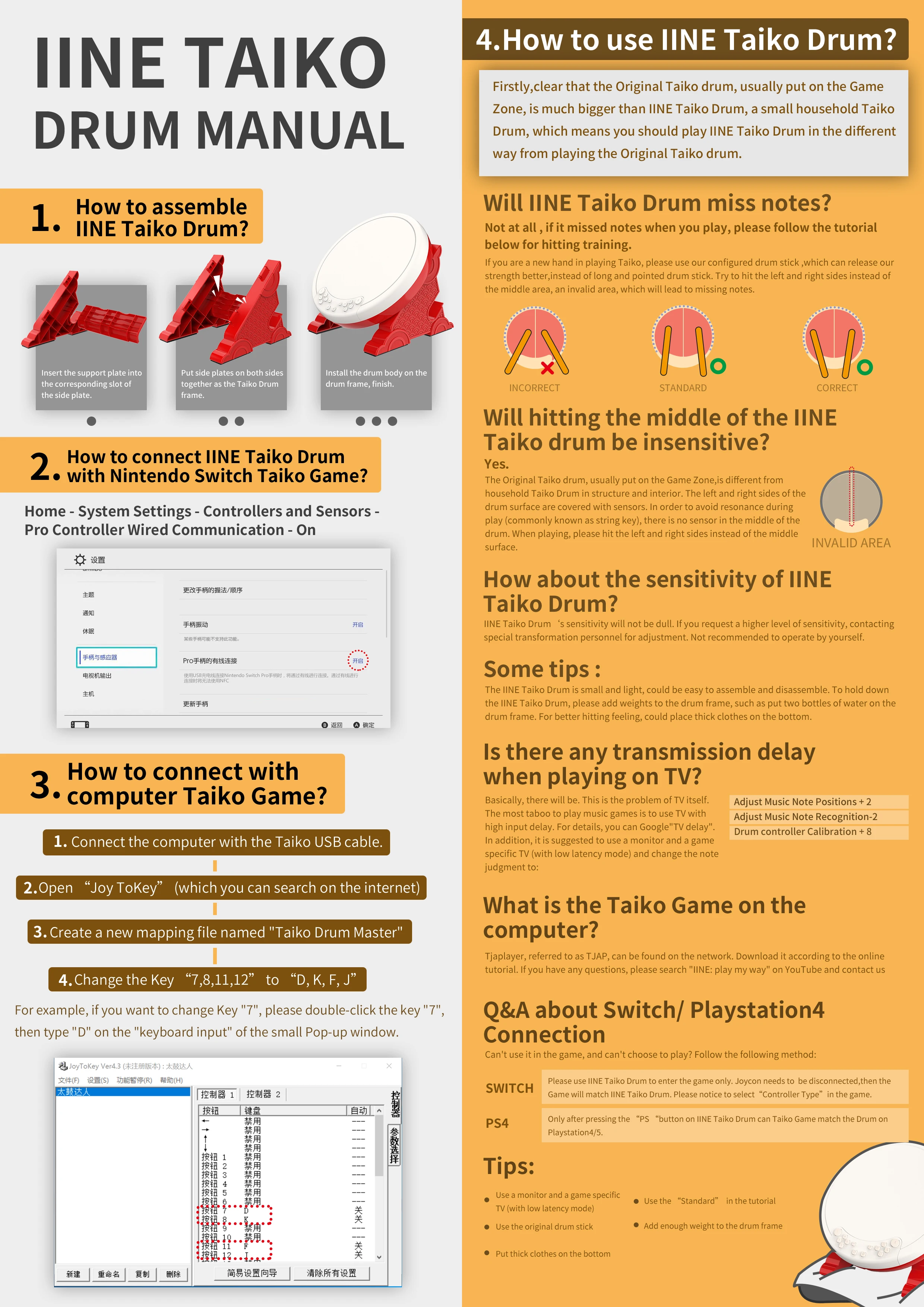 IINE Taiko 드럼 마스터 호환 닌텐도 스위치라이트OLED
