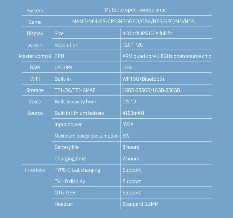 2. 비행기 게임 콘솔과 같은 기본 수직 화면 게임 시리즈로 1:1 고화질 720 * 720LCD 를 사용하십시오.