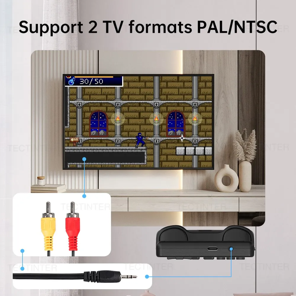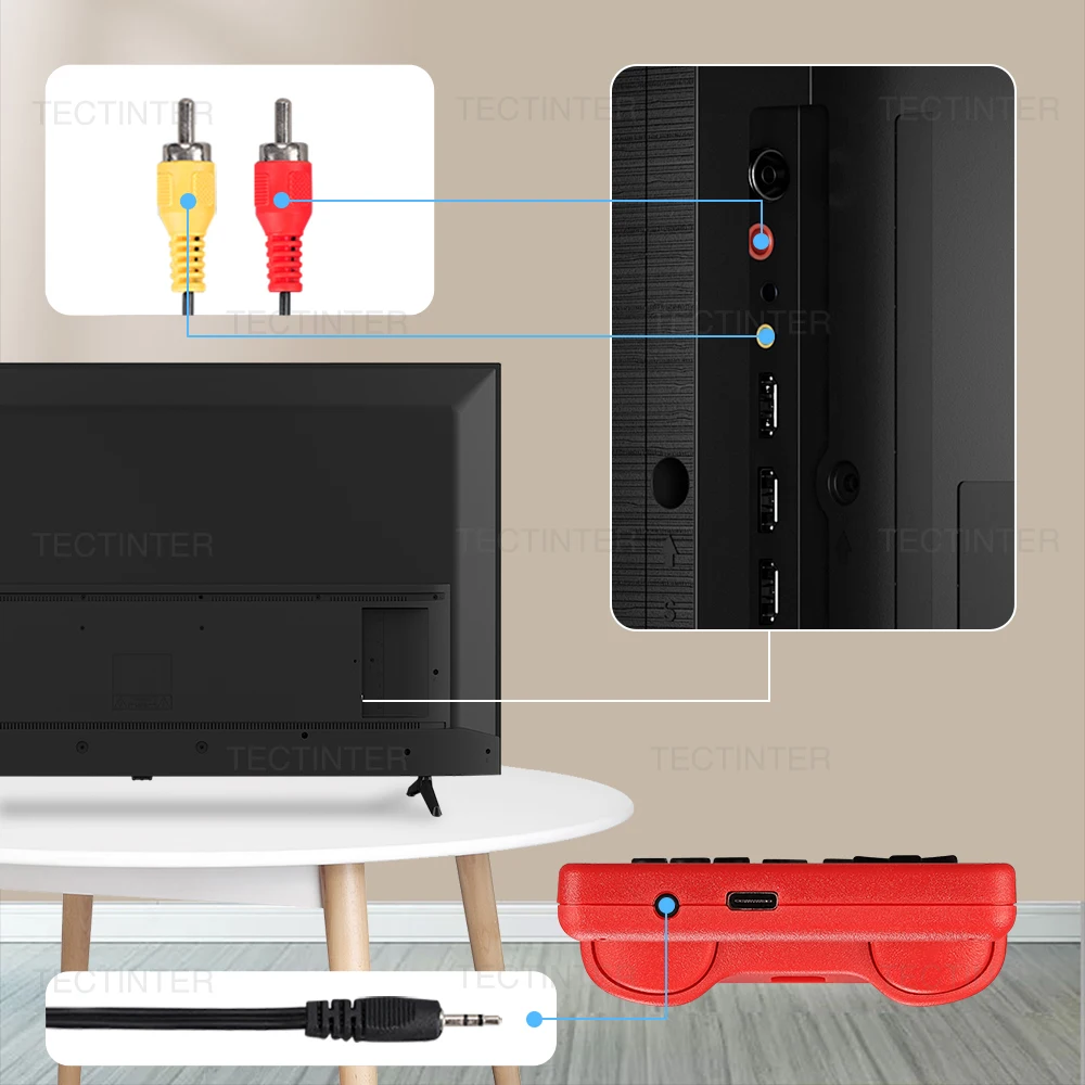 AV 인터페이스가있는 GB300 게임 콘솔을 사용하면 활기차고 흥미 진진한 비디오 게임을 위해 AV 출력을 통해 HD 화면 게임 콘솔을 TV에 연결할 수 있습니다.