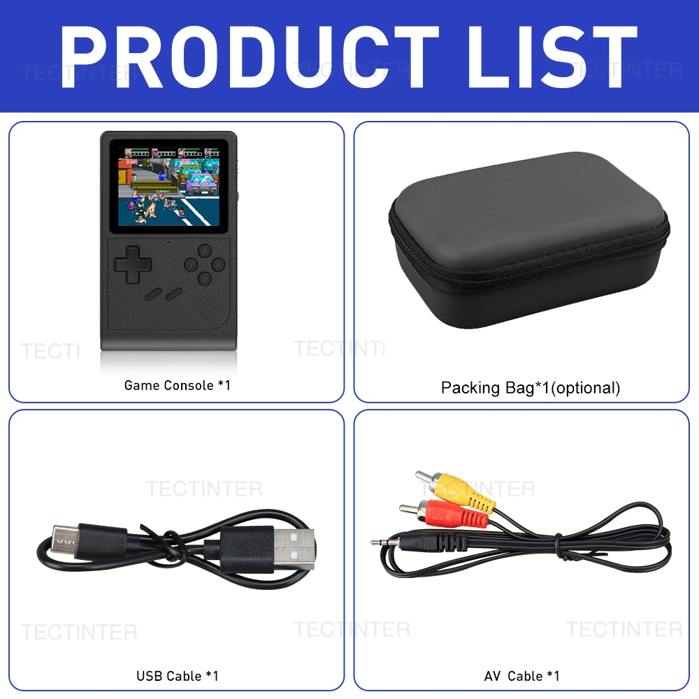 이 휴대용 게임 콘솔은 모험, 액션, 레이싱, 같은 다양한 유형의 게임을 다루는 GB/GBA/GBC/FC/SFC/MD/PCE를 지원합니다. 등 6000 + 게임은 pre-installed.Players 우리가 제공하는 비디오 자습서를 따르고 스스로 게임을 할 수 있습니다.