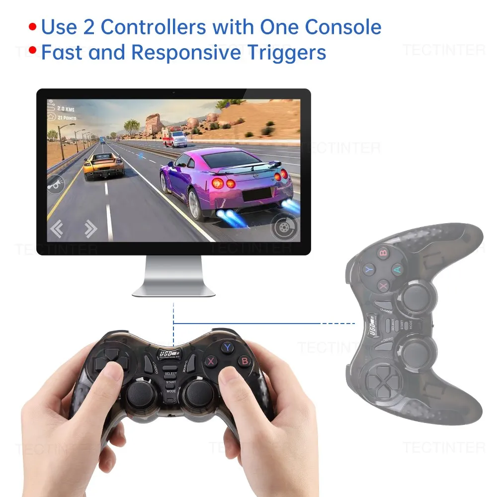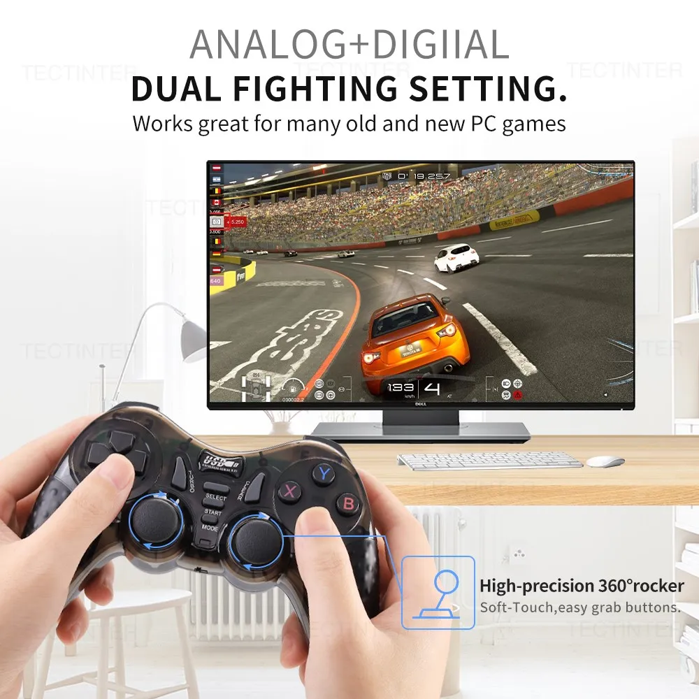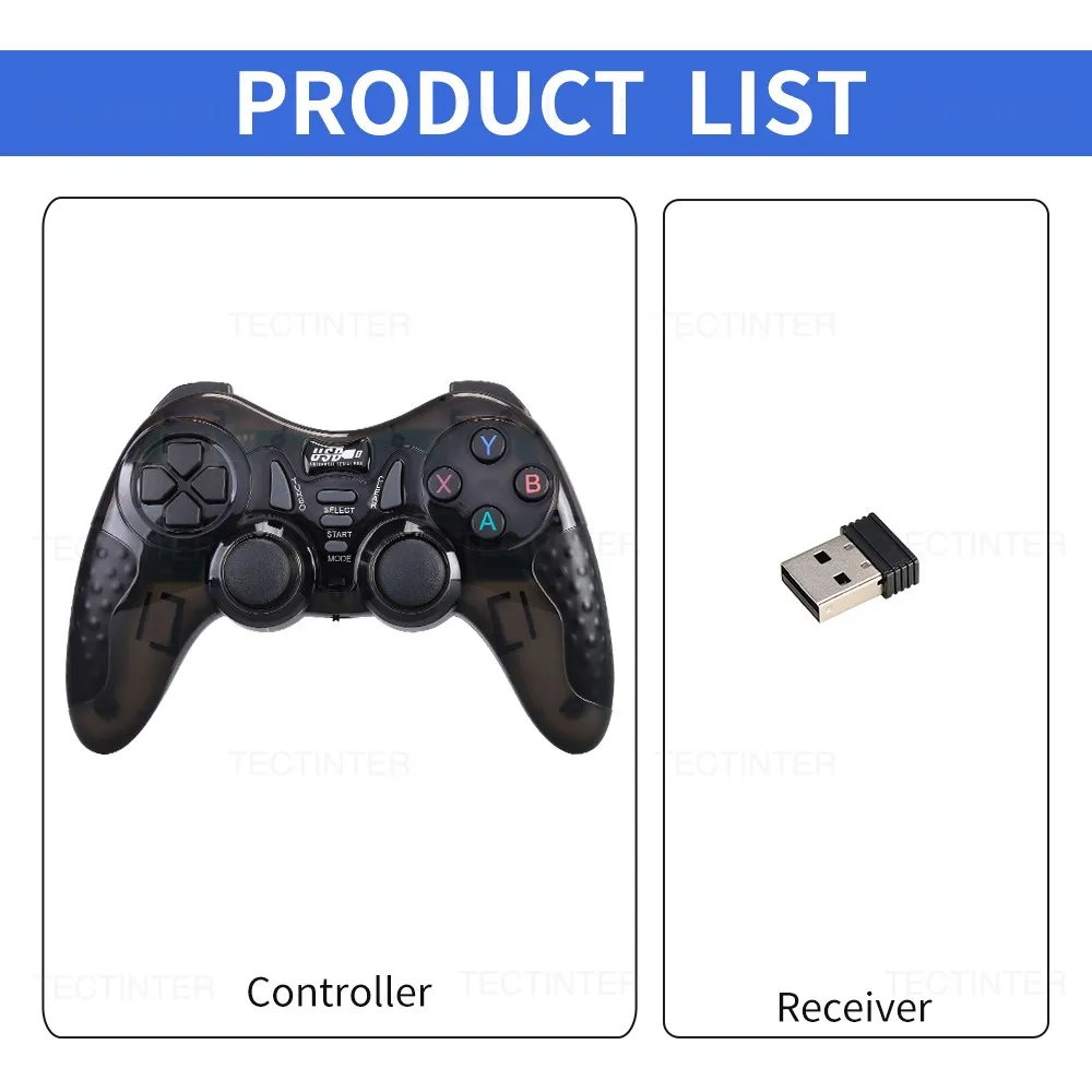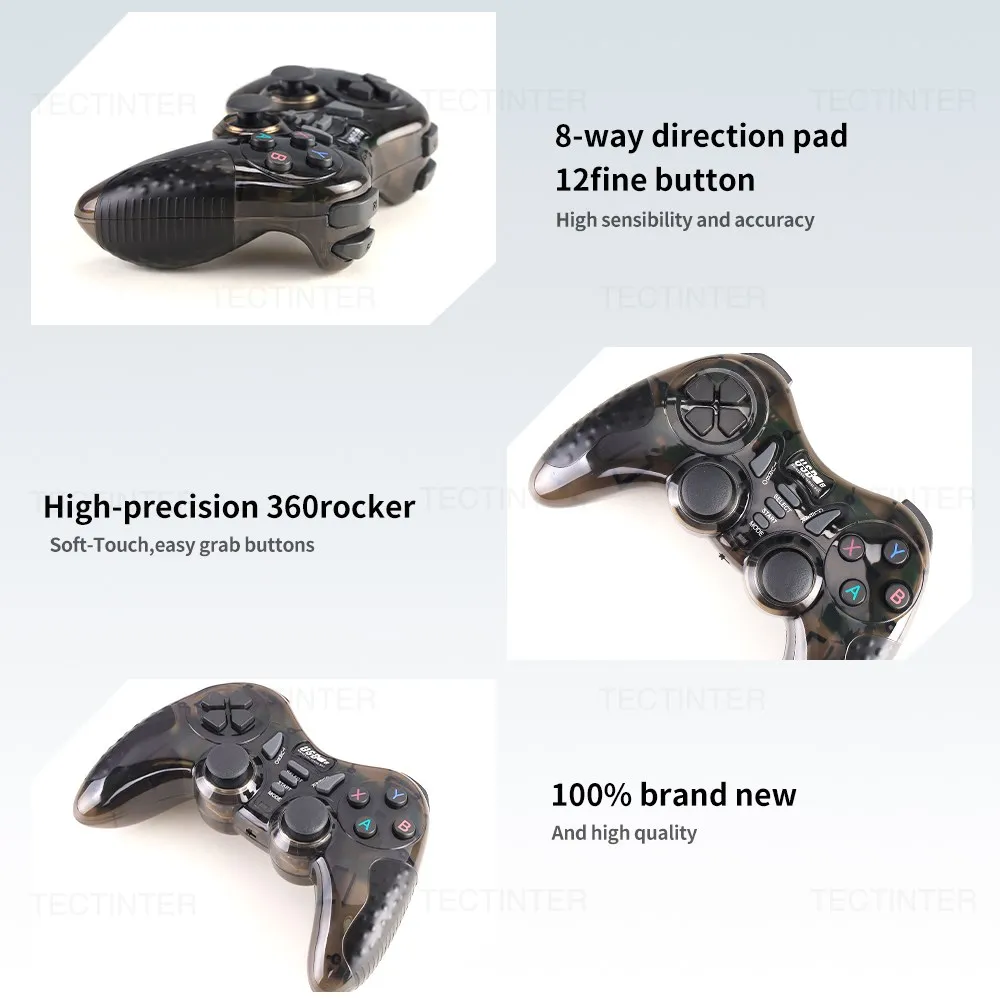 이 게임 컨트롤러는 성숙한 2.4G 무선 전송 기술을 사용하여 블루투스 기능, 진동 없음! 우수한 자동 연결.