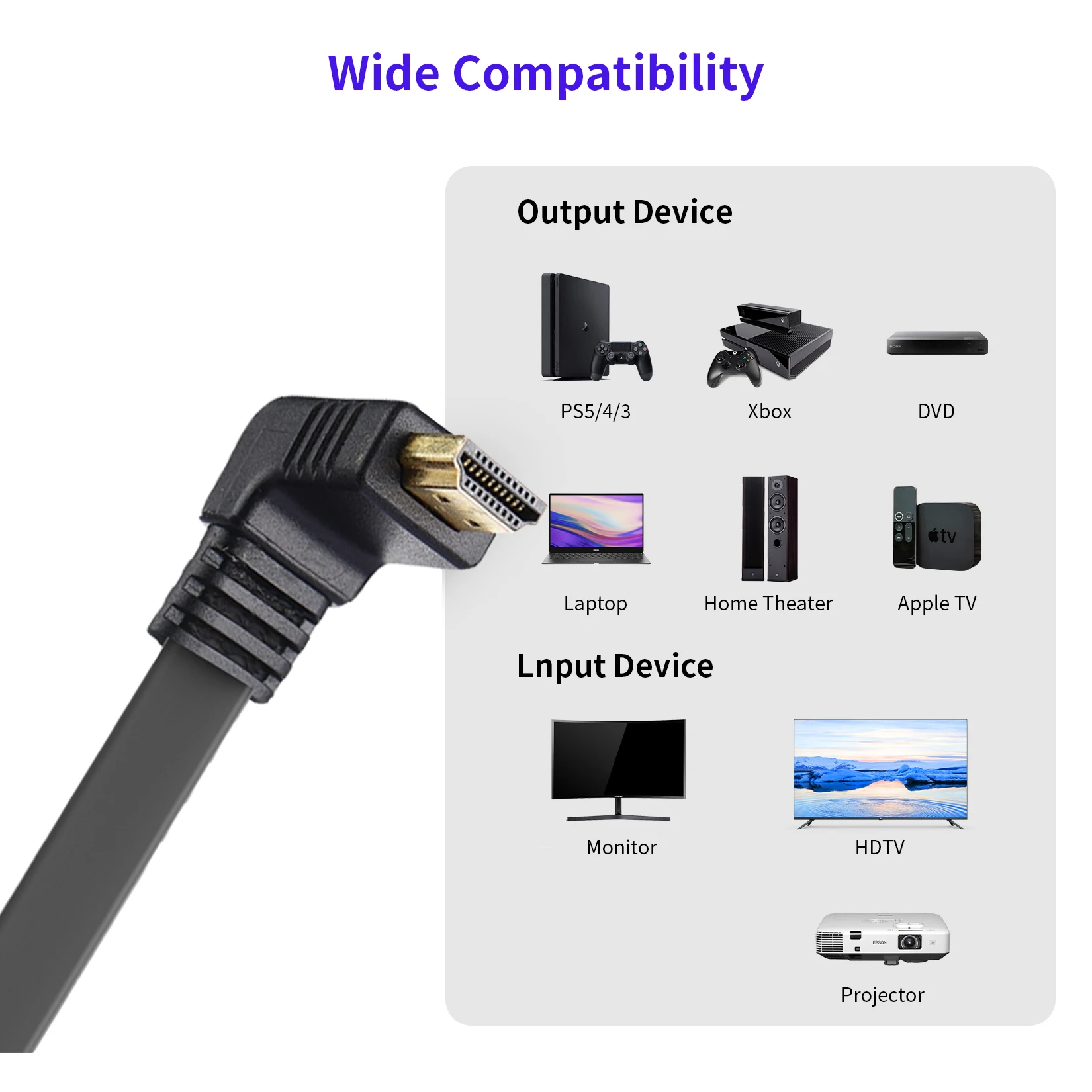 HDMI 직각 어댑터 케이블은 최적의 신호 무결성을 위해 설계되었으며 케이블 손상 및 성능 손실을 방지합니다. 좁은 공간에서 HDMI 연결이 용이합니다. 앵글 HDMI 케이블은 깨끗하고 노이즈없는 신호를 위해 최적의 신호 무결성을 제공합니다. 최대 4KX2K 의 풀 HD 해상도를 지원하며 좁은 공간에서 HDMI 케이블에 대한 스트레스를 줄입니다.