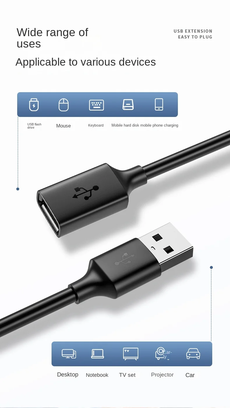 스마트 노트북 PC TV용 USB 익스텐션 케이블 USB 2.0 익스텐션 케이블 Xbox USB 2.0 연장 코드 미니 고속