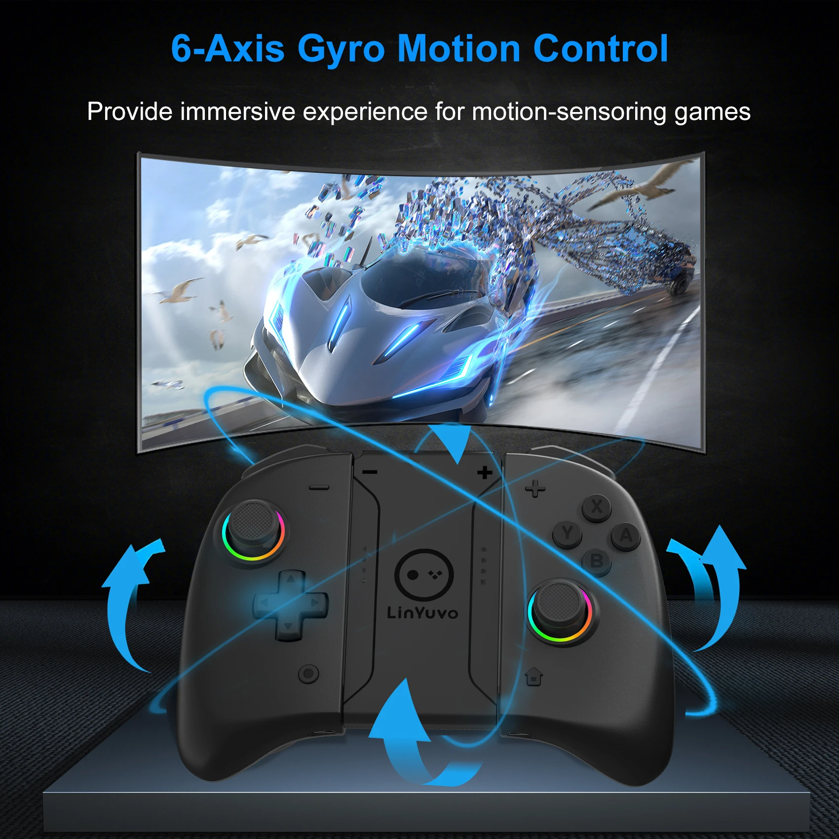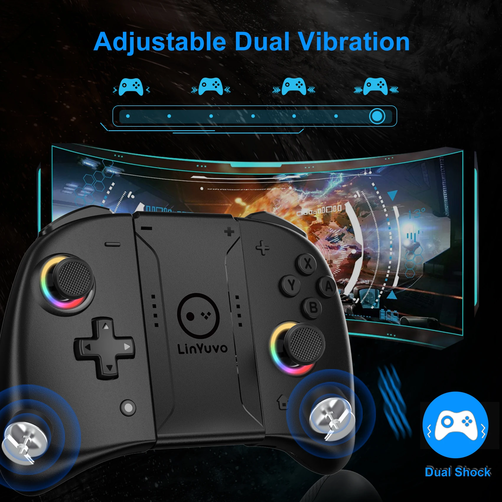 【듀얼 모터 및 6 축 자이로 스코프】 Nintendo Switch 용 LinYuvo KS53 컨트롤러는 이중 햅틱 피드백 모터와 6 축 자이로 스코프 센서를 사용하여 몰입감을 향상시키고 직관적 인 모션 컨트롤을 가능하게합니다.
