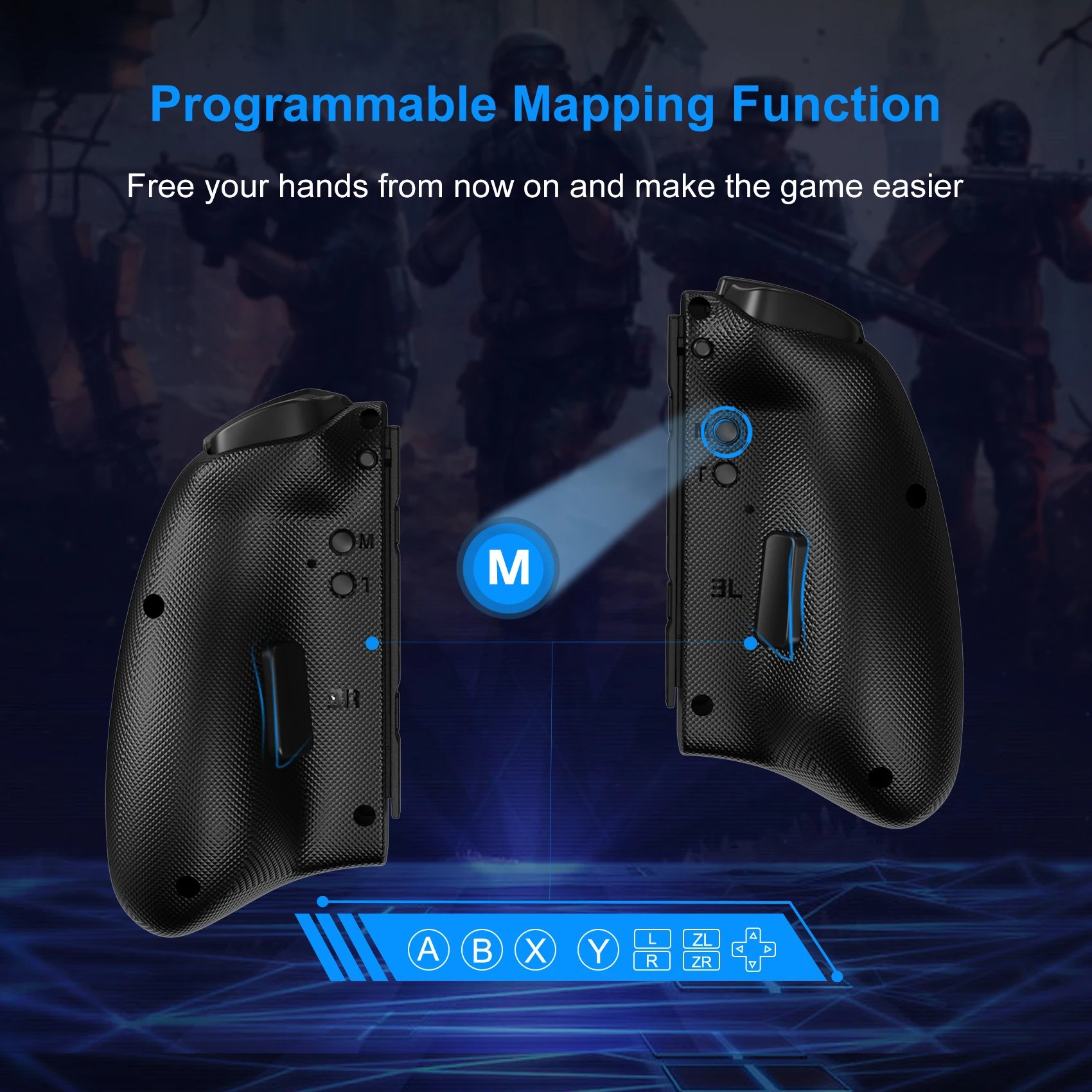 【매핑 및 터보 기능】 매핑 기능을 사용하면 뒷면의 두 버튼을 사용자 정의 할 수 있습니다. 또한 3 단 속도 설정을 갖춘 터보 및 자동 기능이 있습니다.
