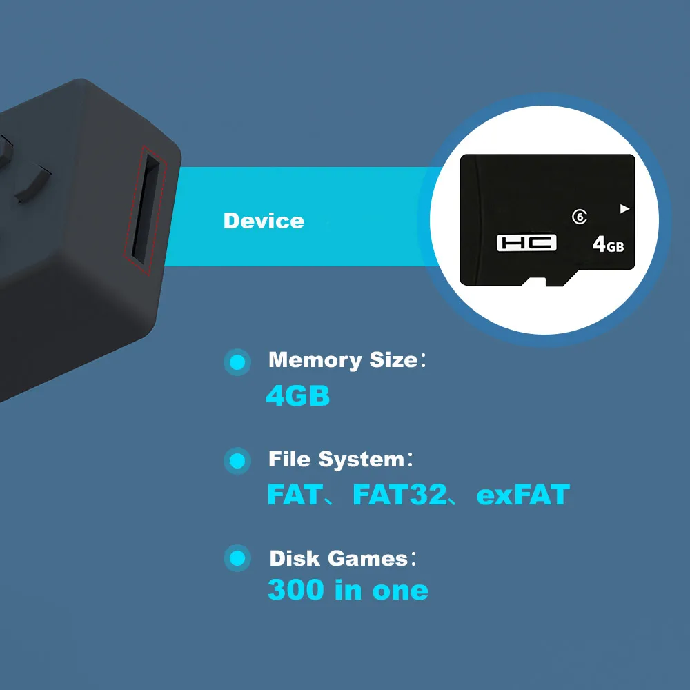 * 4GB TF 메모리 카드 포함, 300 개 이상의 게임 포함