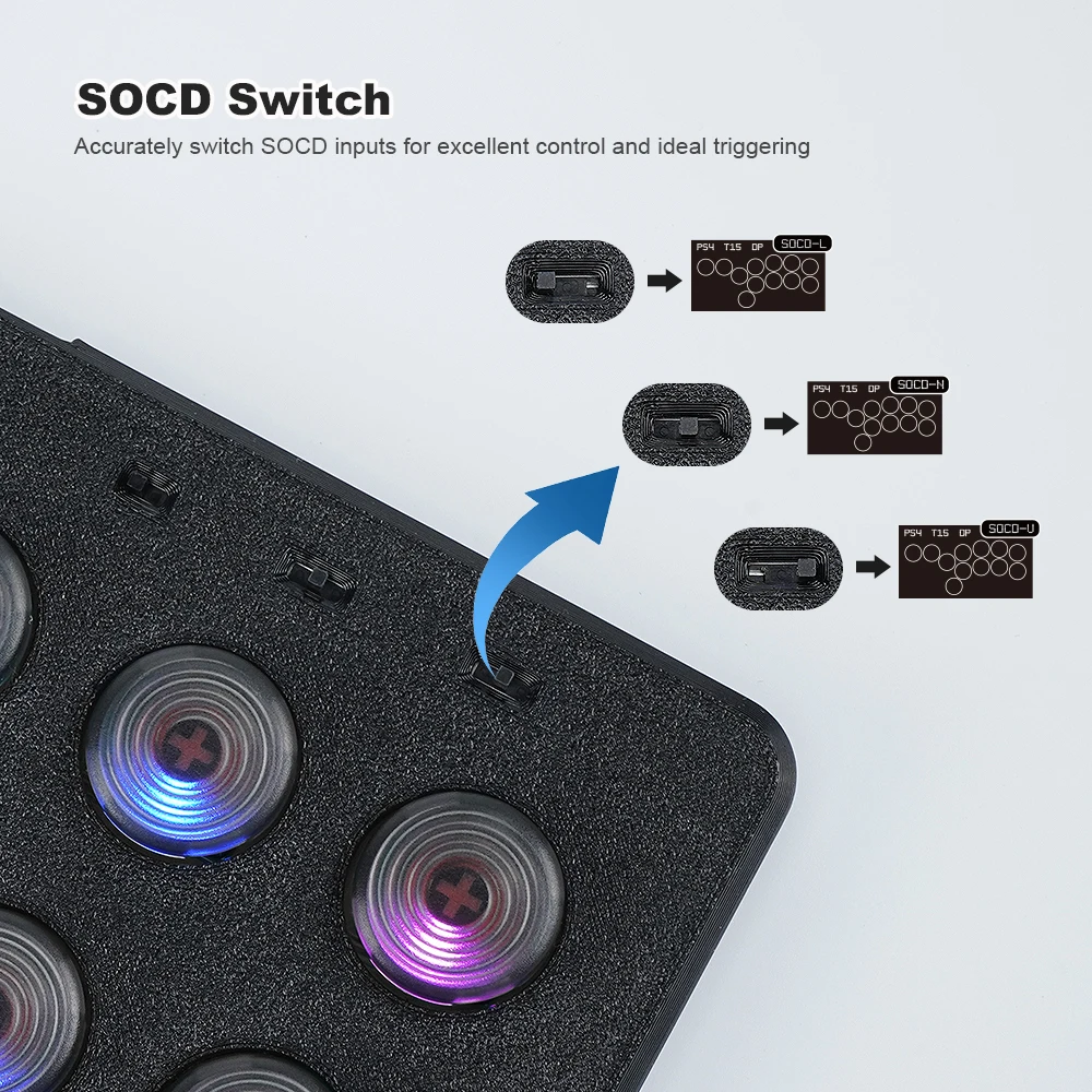? 여러 SOCD 모드 사용 가능: 우선 순위, 중립, 마지막 입력 우선 순위. 첫 번째 입력 우선 순위.