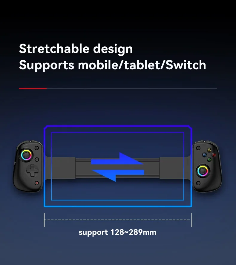 7. 휴대 전화, 태블릿, 스위치 장치를 스트레칭 지원, 128-289mm 길이를 늘릴 수 있습니다.