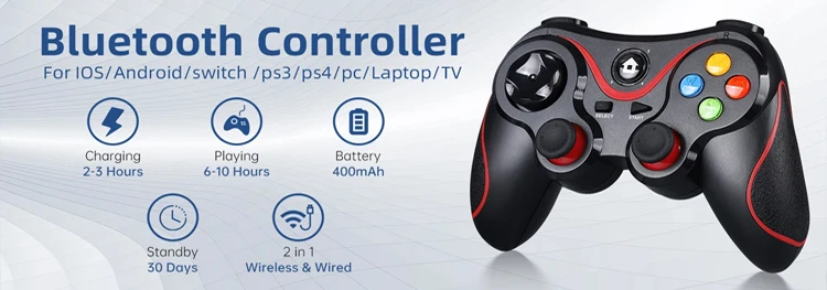 이 컨트롤러는 스위치, , PS4, PC, 노트북, IOS,Android, 스마트 TV와 같은 많은 장치를 지원합니다. 지원 2.4GHz/블루투스 4.0/유선 3 연결 방법, 인체 곡선 디자인, 당신은 오랫동안 게임에 중독 된 경우에도 피곤하지 않습니다!