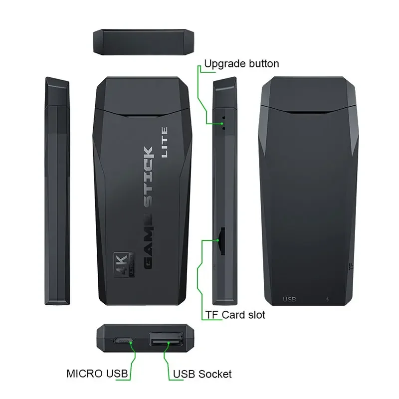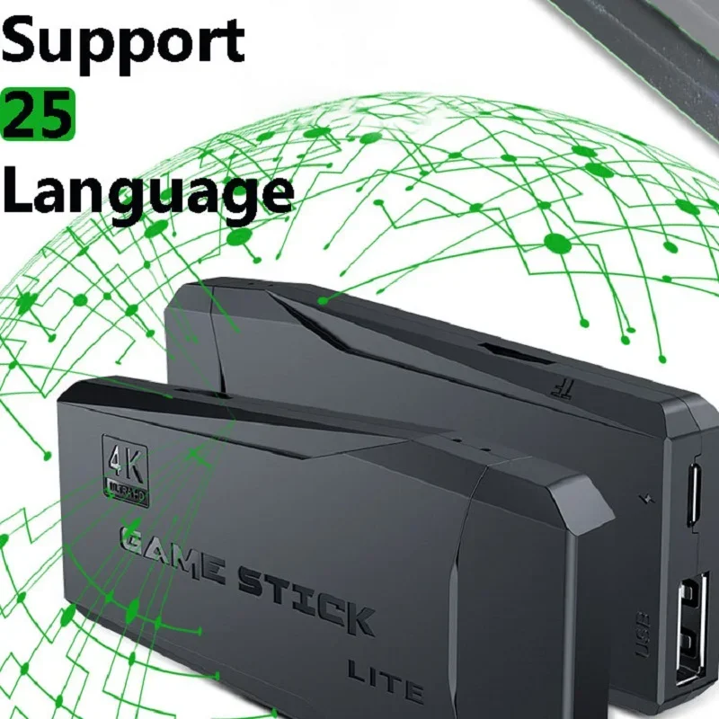 이것은 25 개 언어를 지원할 수있는 최신 무선 TV 게임 콘솔이며 64G 메모리 카드가 장착되어 있으며 20,000 개 이상의 게임이 내장되어 검색, 수집, 보관, 좋아하는 게임 다운로드를 지원합니다.