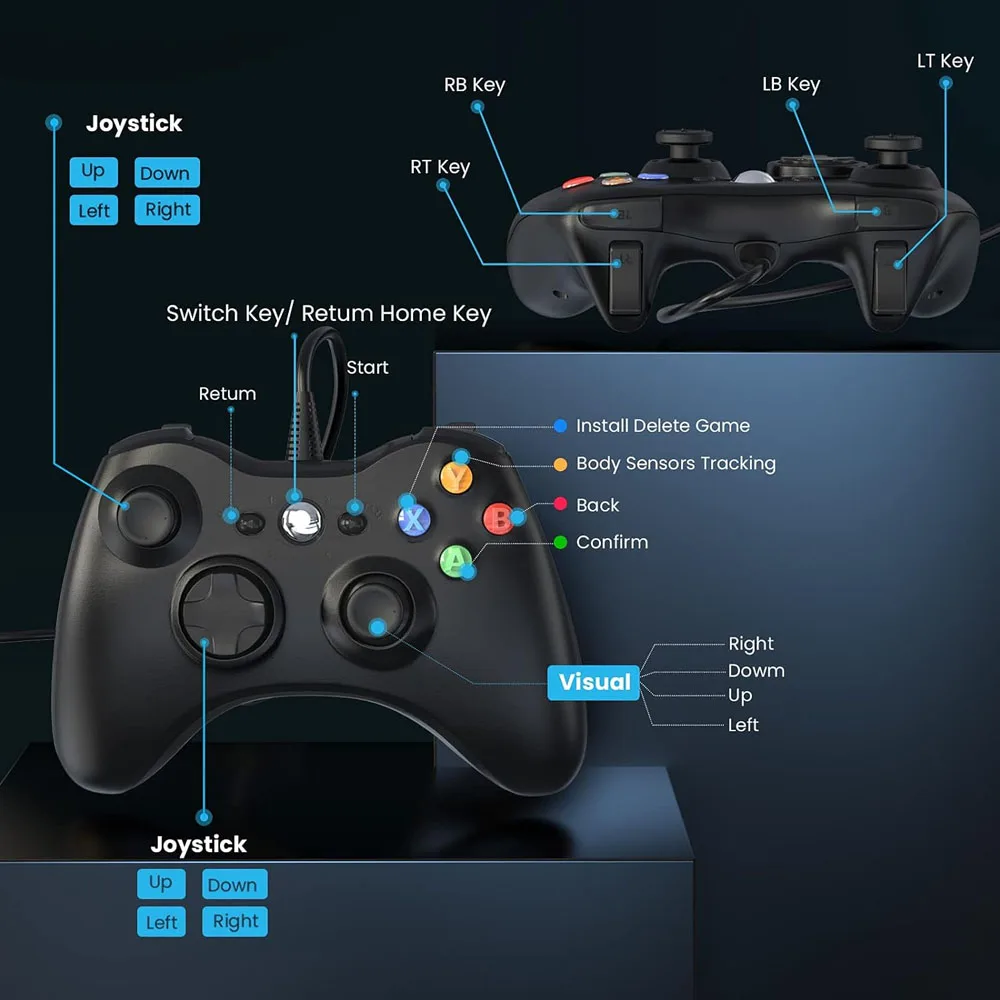 USB 유선 게임 컨트롤러 콘솔 조이패드 Win 7 810 PC 조이스틱 제어 게임패드