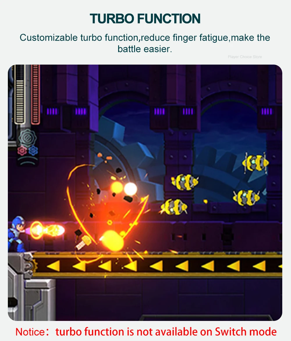 맞춤형 터보 기능, 손가락 피로 감소, 전투 용이성.