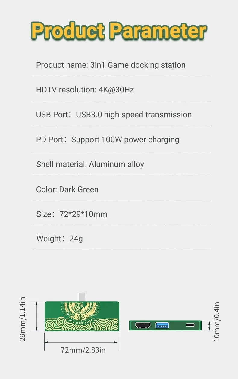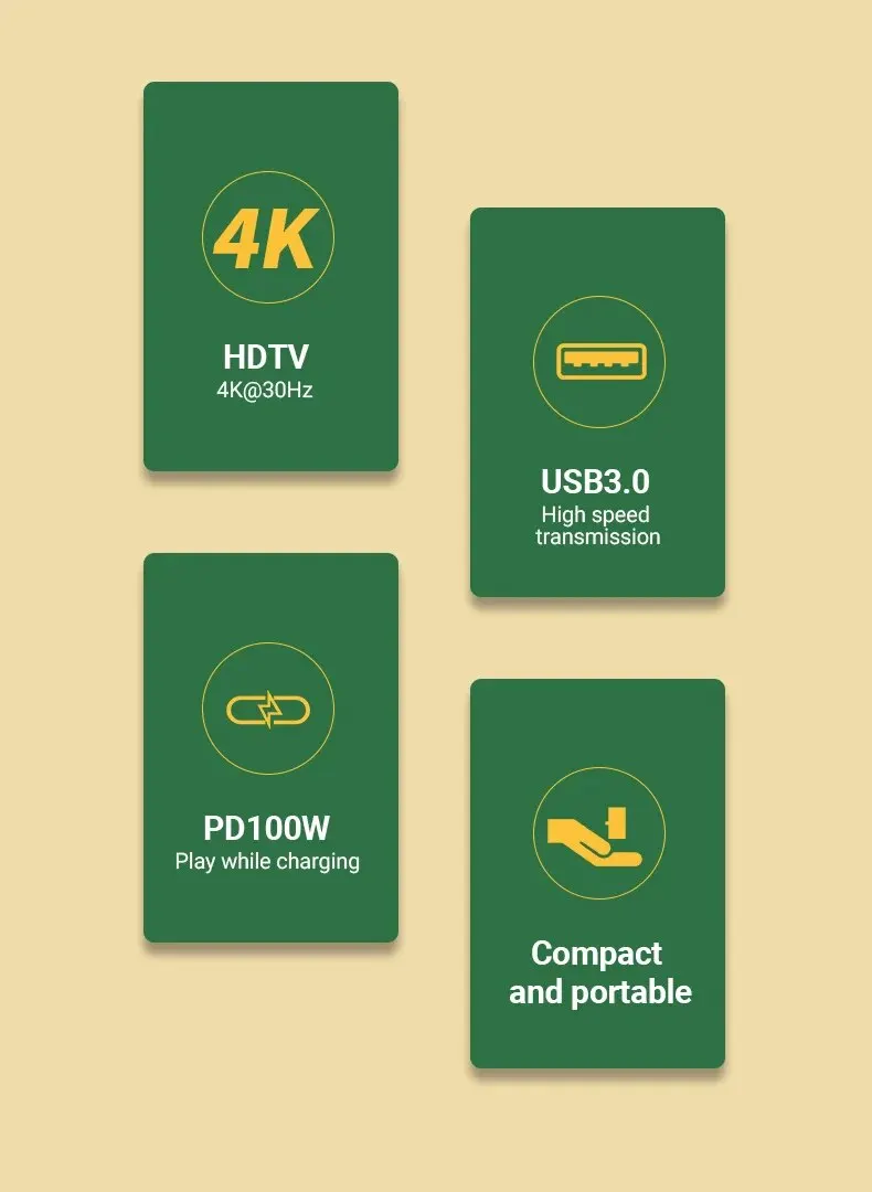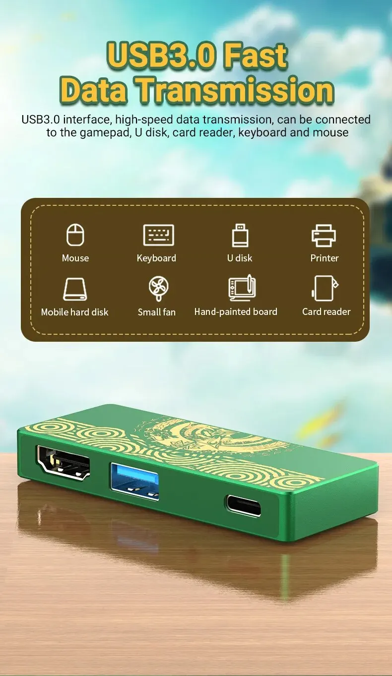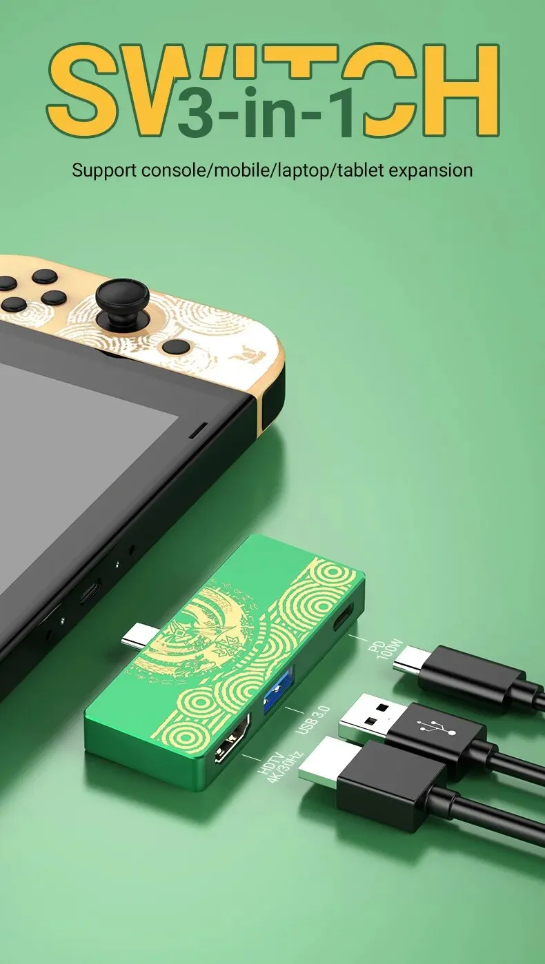 스위치 도킹 스테이션용 휴대용 닌텐도 단면 플러그인 USB-C 허브 멀티 포트 어댑터 스팀 D용 PD 100W 충전