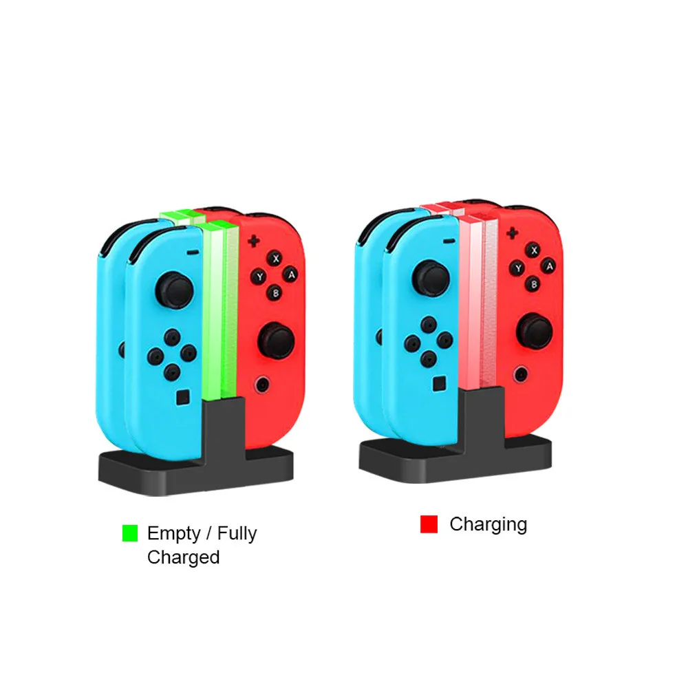 Joy Cons와 호환되는 2 SET CHARGER - DOBE 충전 스탠드는 Joy Cons에 완벽하게 맞는 전문적인 디자인입니다. 조이콘을 동시에 최대 4 개의 컨트롤러까지 충전합니다. (조이콘에는 포함되지 않음)