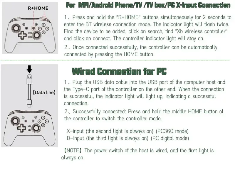 ? 블루투스 인터페이스:이 게임 패드에는 블루투스 인터페이스가있어 Nintendo Switch OLED/Lite 또는 Steam Deck 장치와의 원활한 연결을 보장합니다.