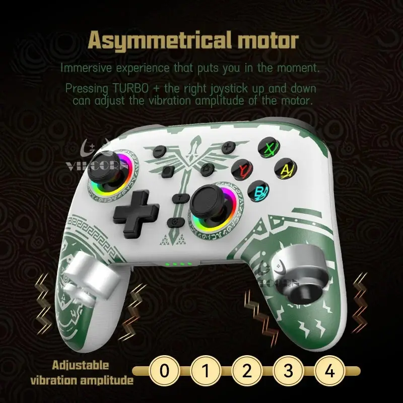 Nintendo Switch 애호가를 위해 독점적으로 설계되었습니다. 좋아하는 게임을 쉽게 탐색 할 때 향상된 정밀도와 제어를 경험하십시오. 이 혁신적인 컨트롤러는 비대칭 모터 디자인으로 사실적인 게임 경험을 위해 몰입 형 진동 피드백을 제공합니다. 매끄럽고 인체 공학적 디자인으로 컨트롤러는 강렬한 게임 세션 동안 최대한의 편안함을 보장합니다.