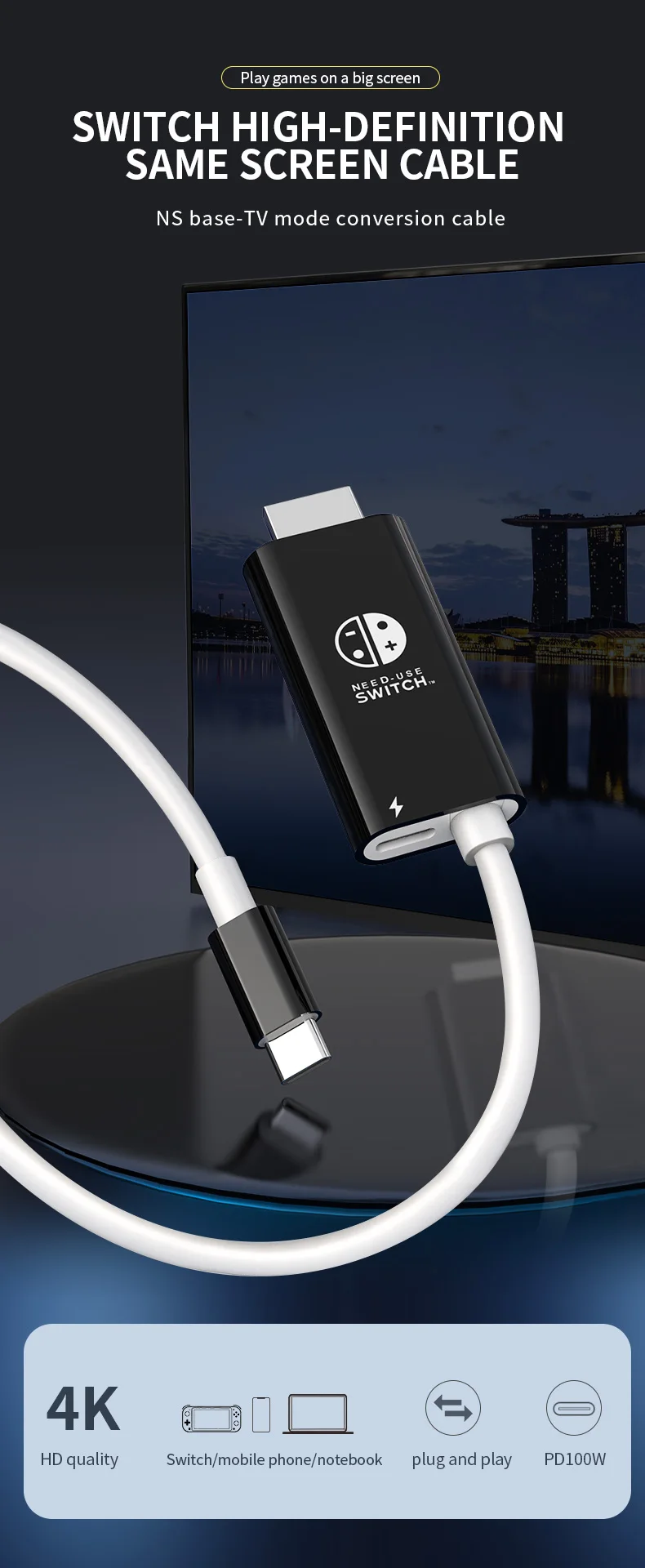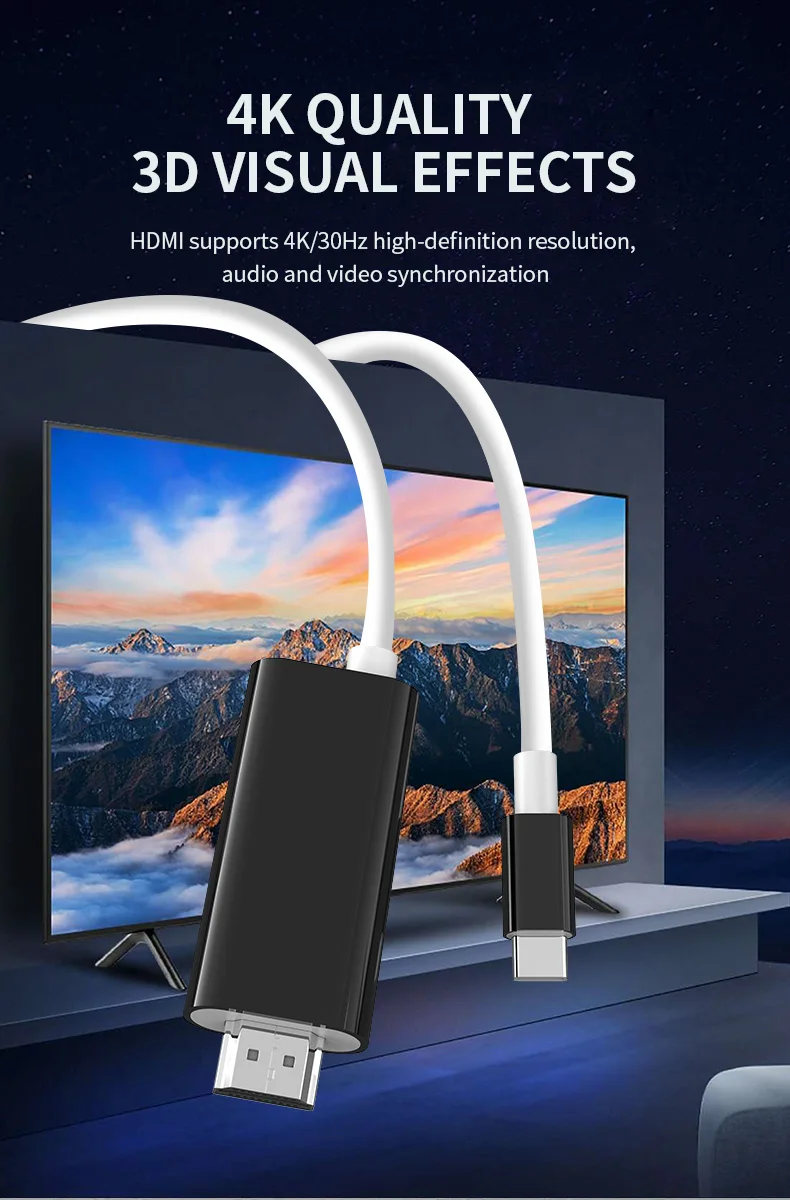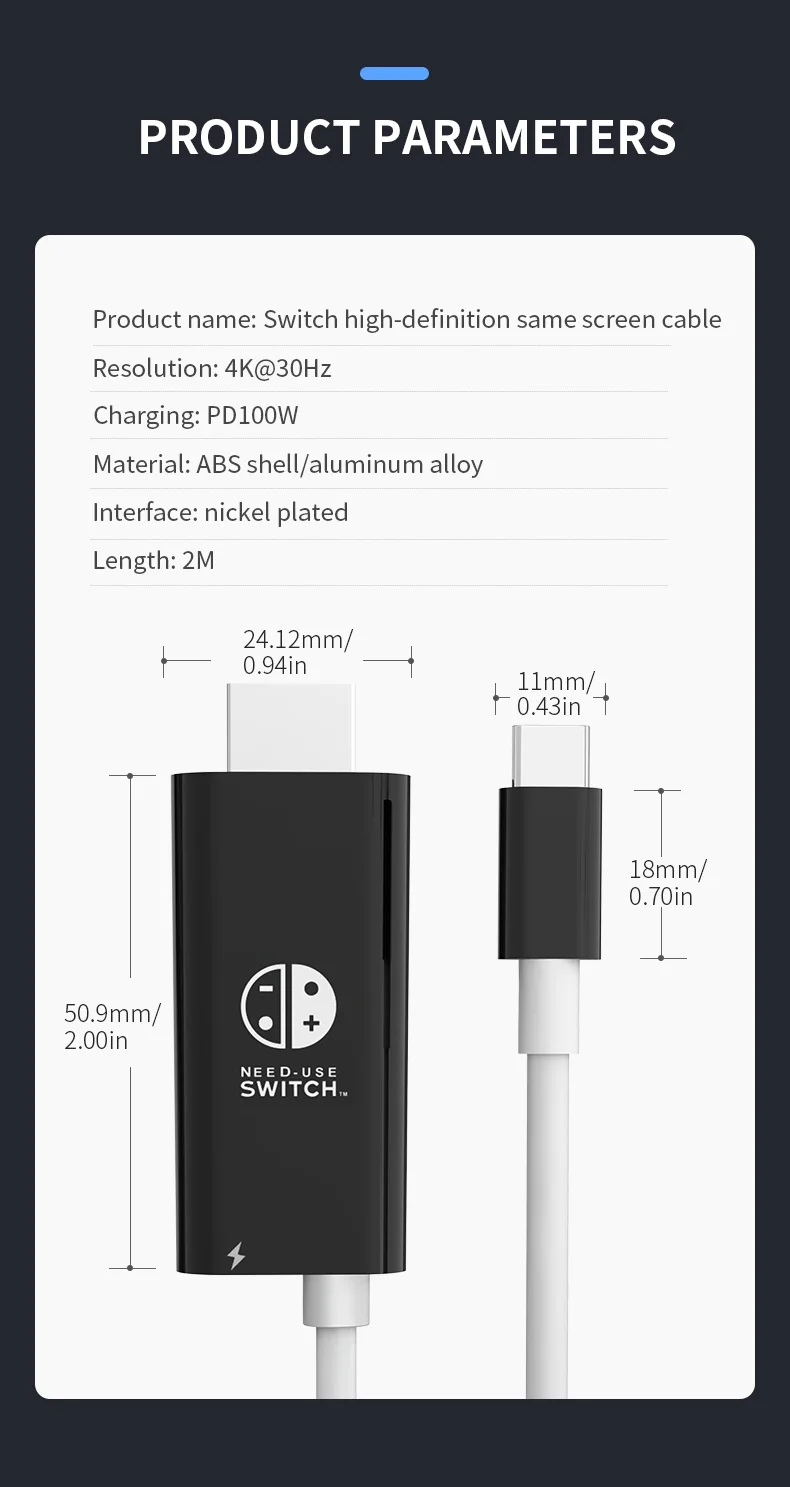 닌텐도 스위치 스팀 데크의 TV 도킹 모드용 2m 4k 30Hz 휴대용 USB c타입부터 hdmi까지 변환 케이블