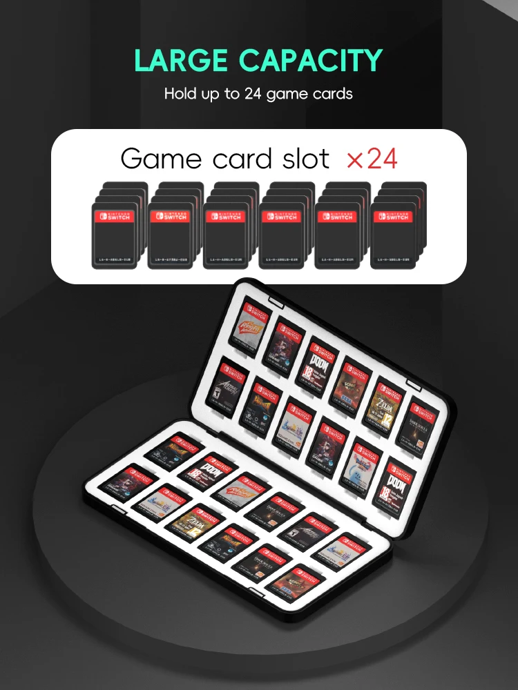 • 24 in 1 기능:이 다재다능한 제품은 Nintendo Switch 카드를 보유 할뿐만 아니라 다른 게임을위한 추가 저장 공간을 제공하여 게임 요구에 맞는 24-in-1 솔루션을 제공합니다.