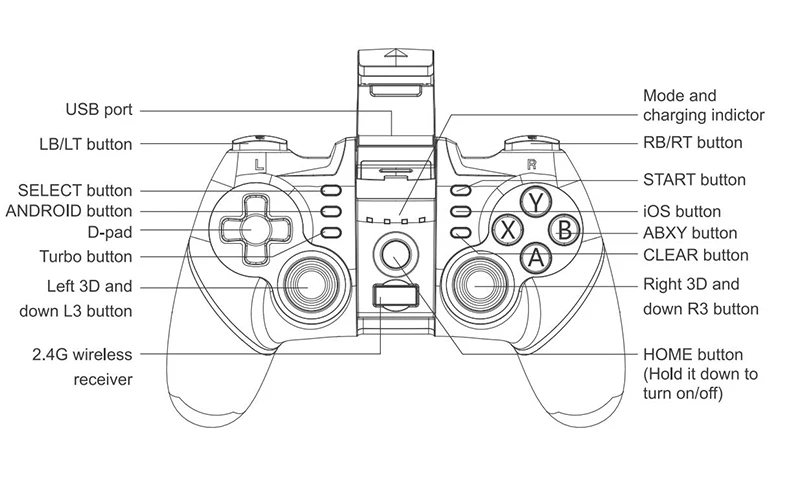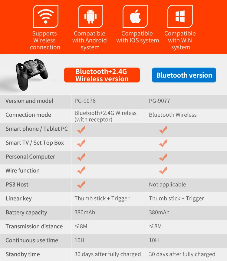 2. 이 제품은 무선 연결을 통해 Android 모바일 (태블릿)/IOS 모바일 (태블릿)/Android 스마트 TV/ PS4 콘솔/PC에서 게임을 운영하는 데 적합합니다. 유선 연결을 통해 P3 콘솔/PC 컴퓨터.