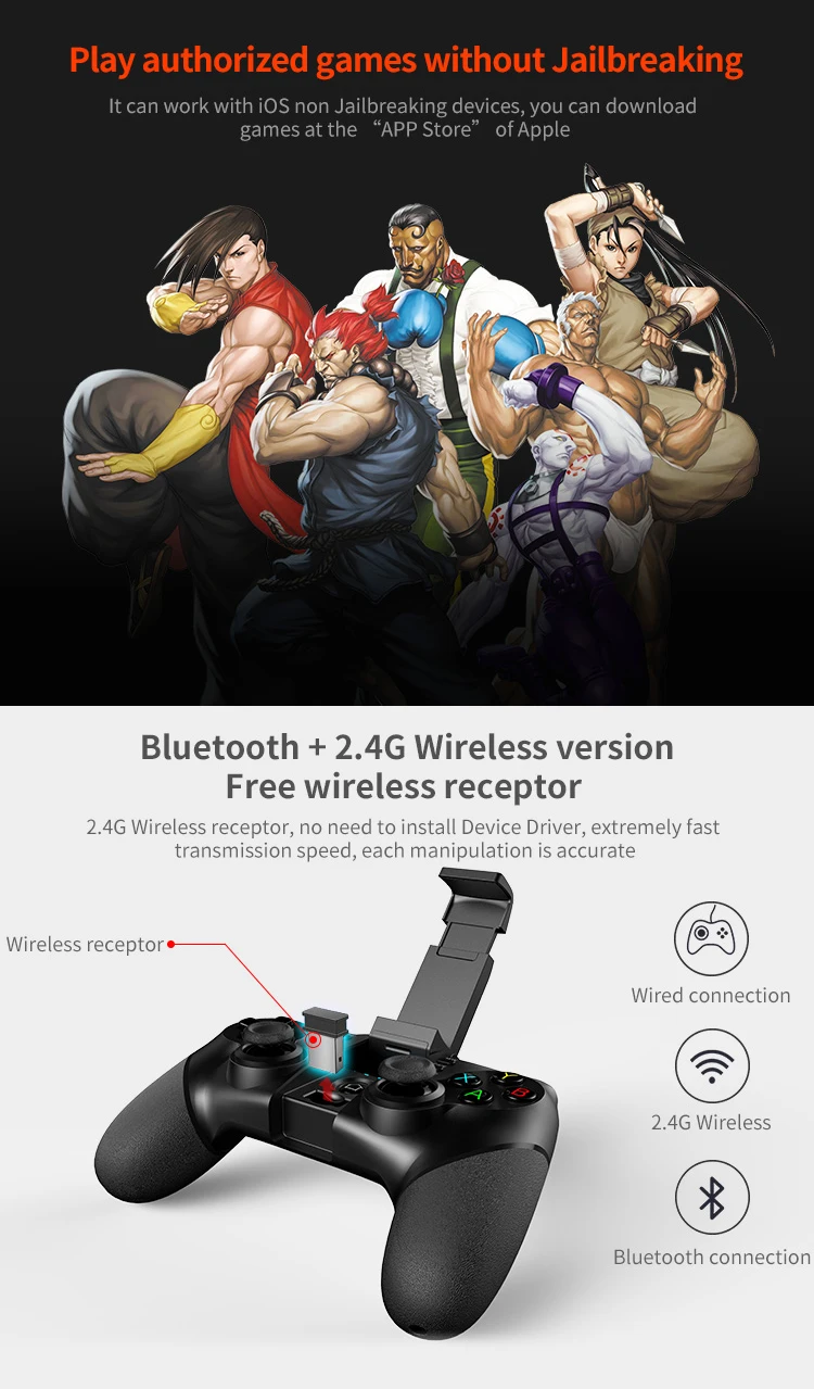 5. 2.4 수신기가있는 제품은 PC/P3/와 무선 연결로 게임을 즐길 수 있습니다. * 이 제품은 다른 운영 체제 (예: MTK 플랫폼이있는 휴대폰) 로 인해 일부 휴대 전화와 호환되지 않을 수 있습니다.