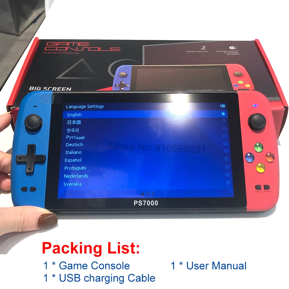 PS7000 7 인치 HD 레트로 휴대용 휴대용 비디오 게임 콘솔 6000 + 게임 PS1 용 휴대용 게임 플레이어 콘솔
