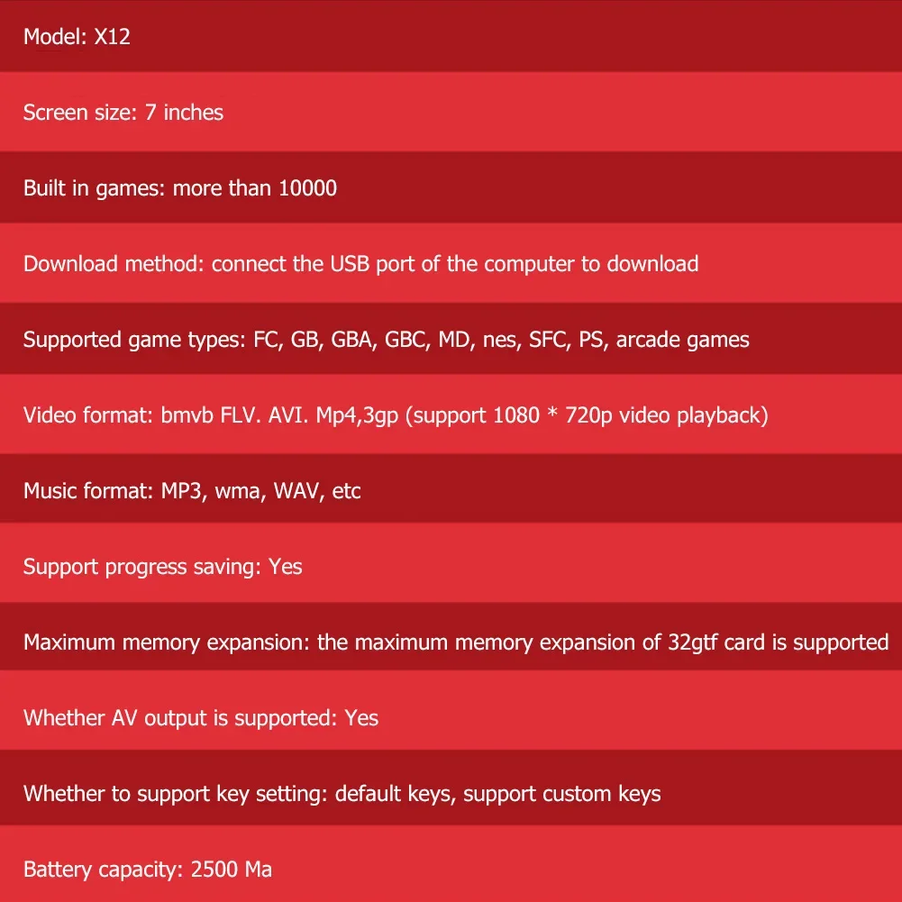X12 PLUS 휴대용 게임 콘솔 7.1 인치 HD 화면 휴대용 레트로 비디오 게임 플레이어 내장 10000 + 클래식 게임