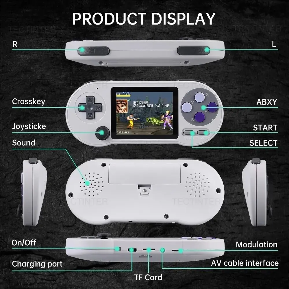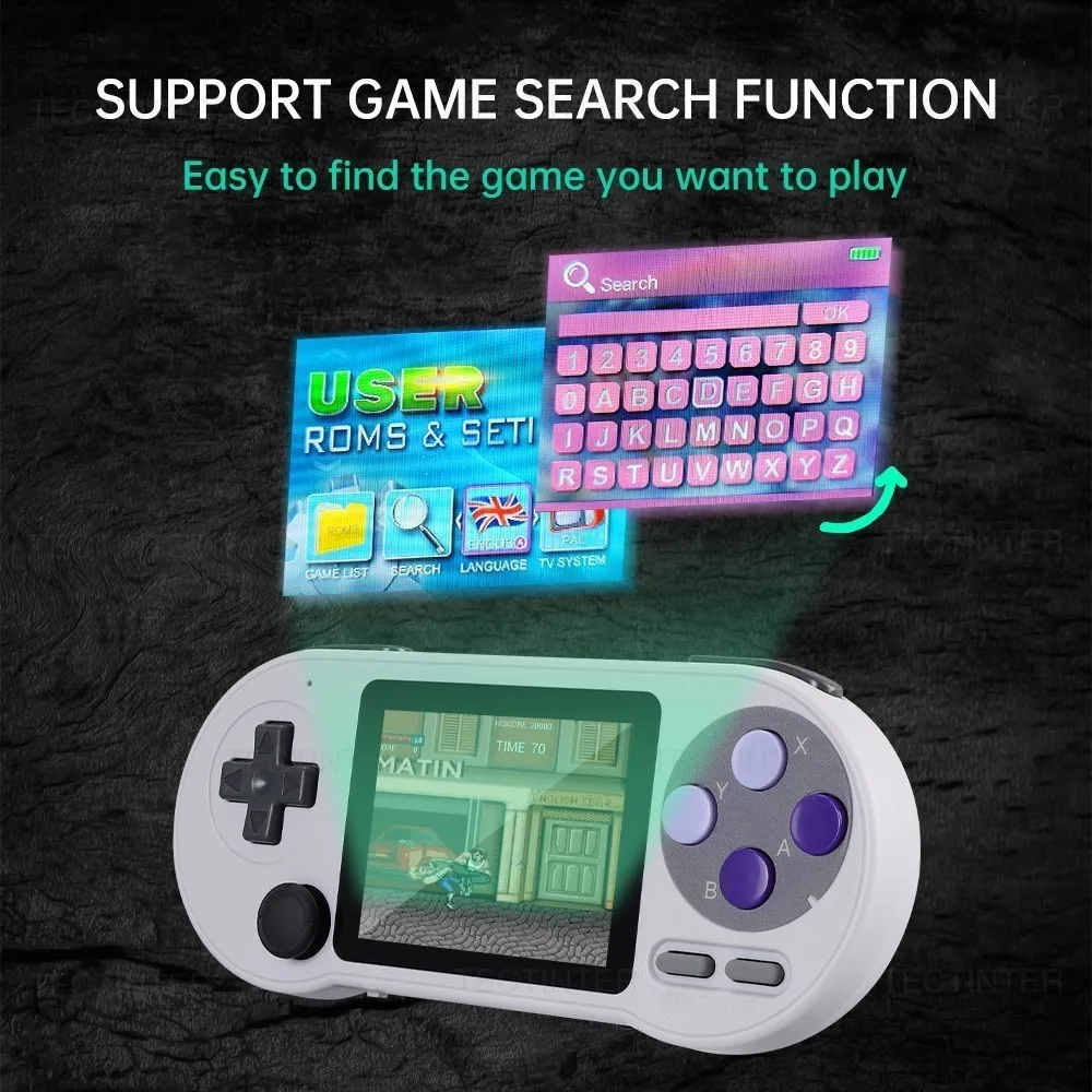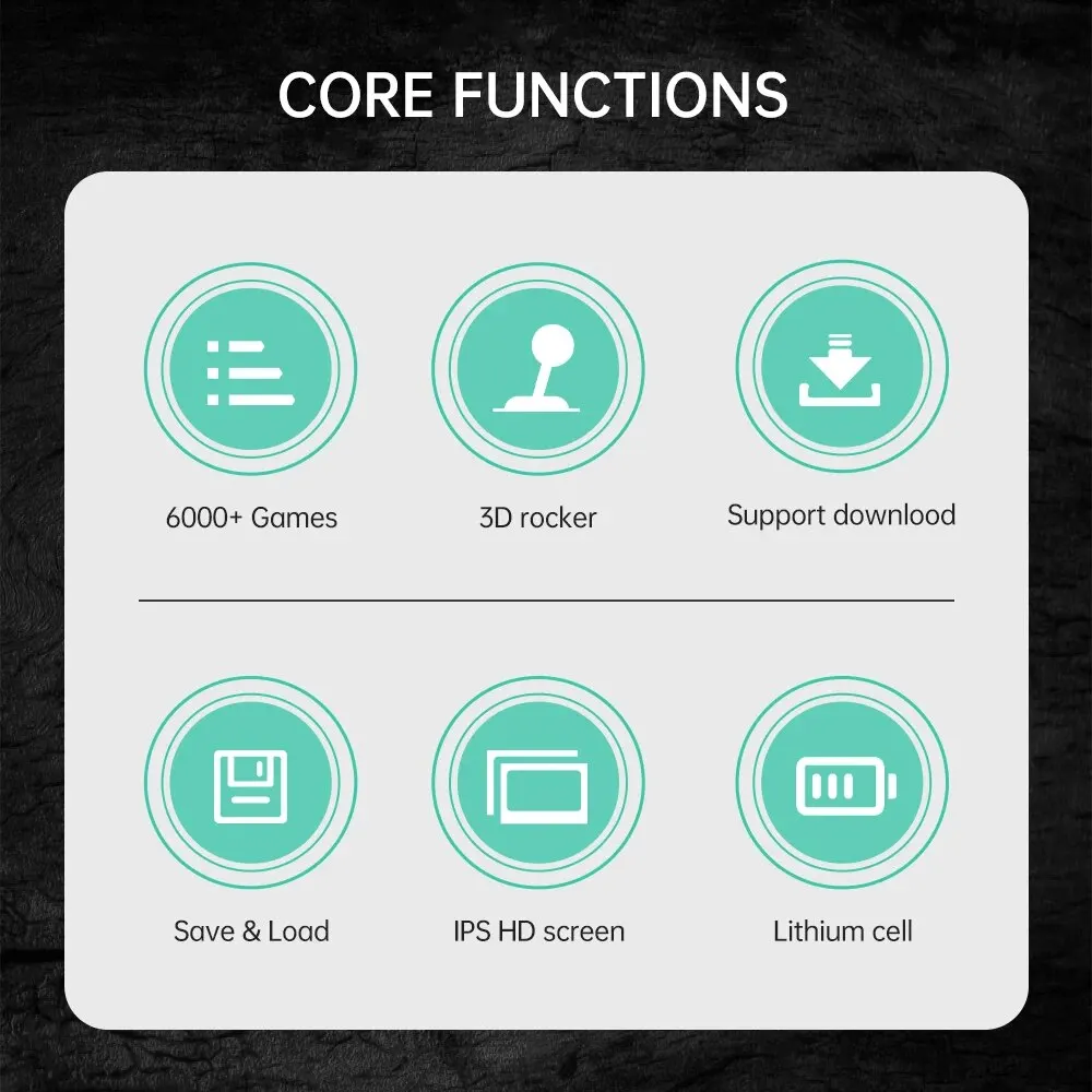 이 핸드 헬드 게임 콘솔은 6000 가지가 넘는 클래식 게임, 고정밀 조이스틱이 장착 된 IPS 고화질 부드러운 화면, 게임 다운로드 및 수집 지원, 다양한 게임을 다루는 7 가지 종류의 에뮬레이터를 지원합니다.