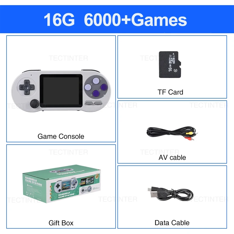 The game console built in a 16GB TF card, include 10000+ Games and 7 emulators, also support download games yourself.