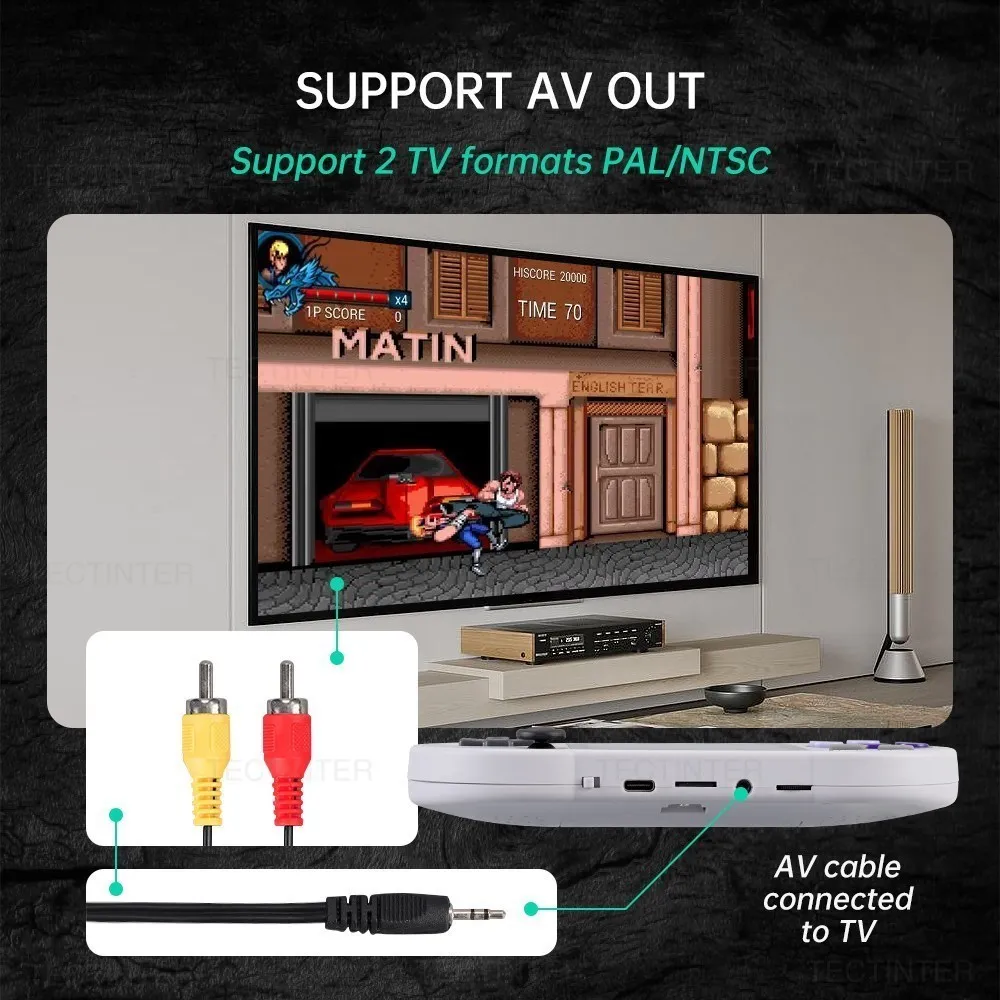 The handheld game console with 3-inch HD display allows you to connect the HD screen game console to your TV via the AV output for lively and exciting video games.